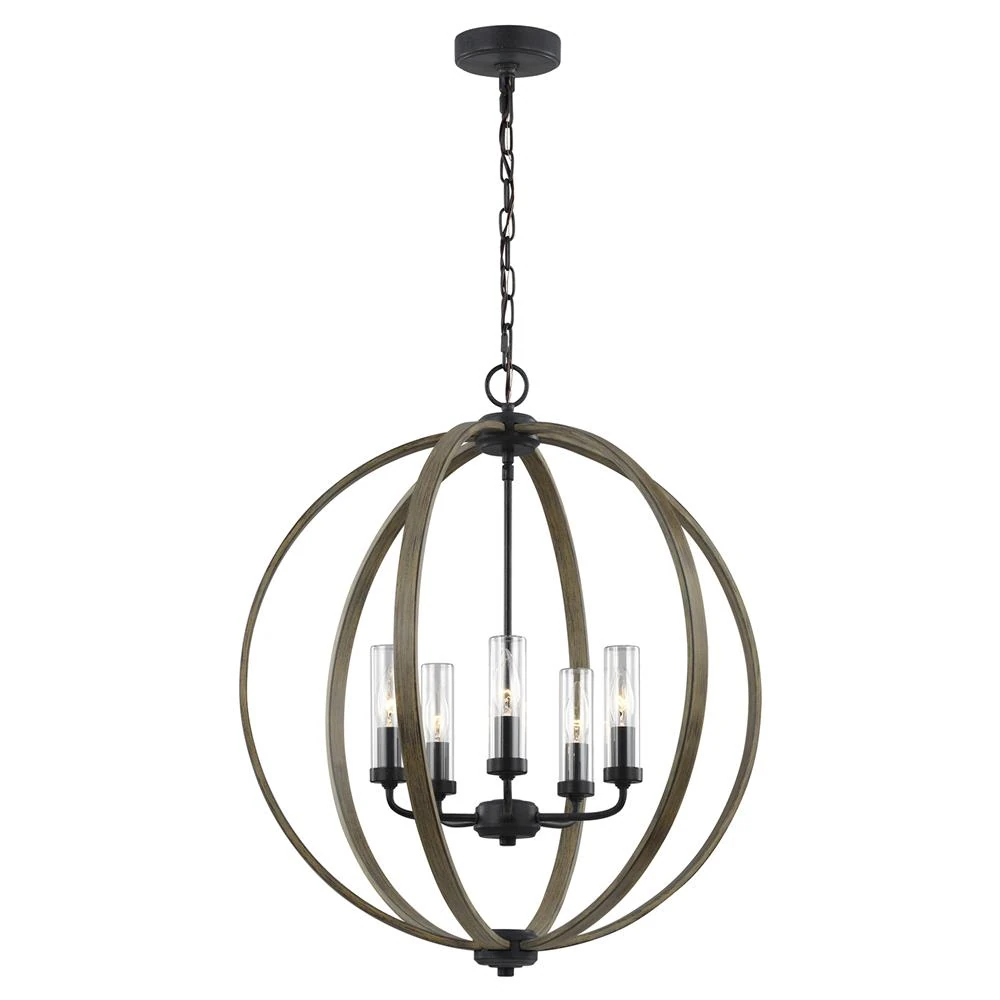 Visual Comfort Studio Allier Rustic Weathered Oak Iron Pendant - Small