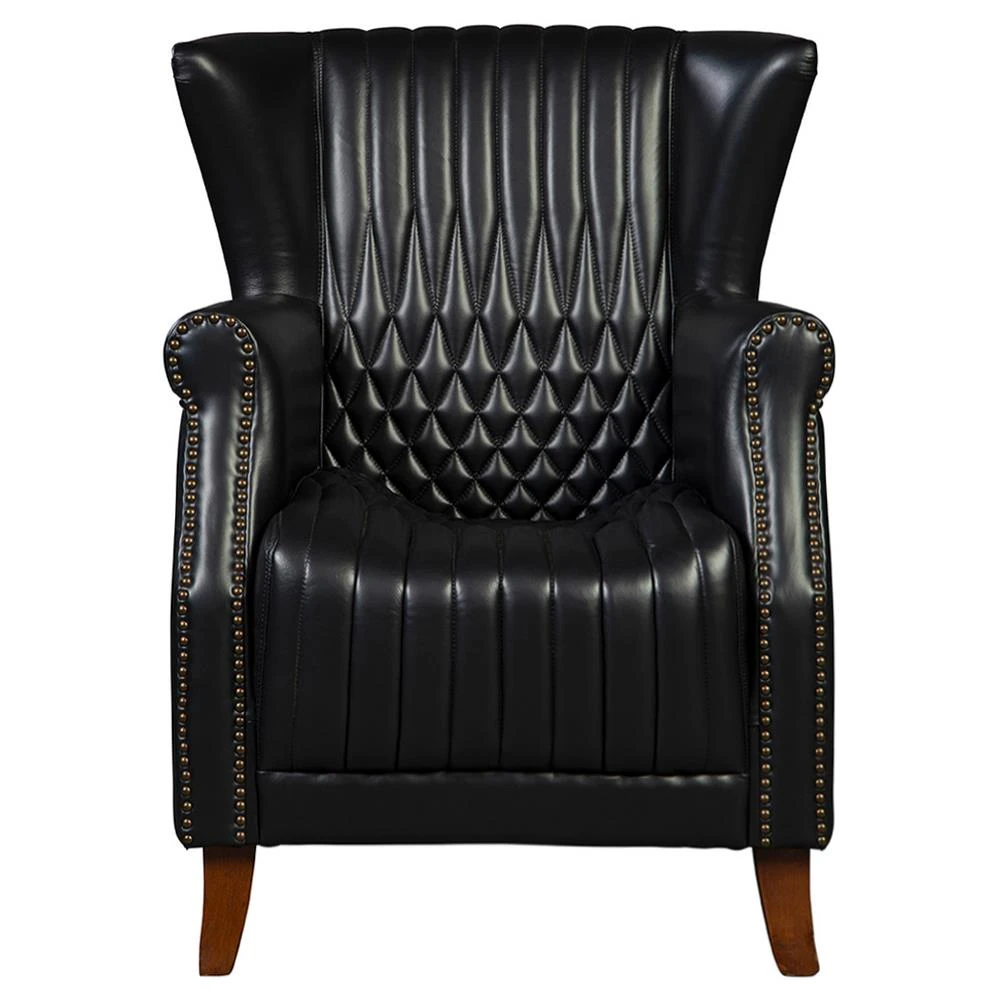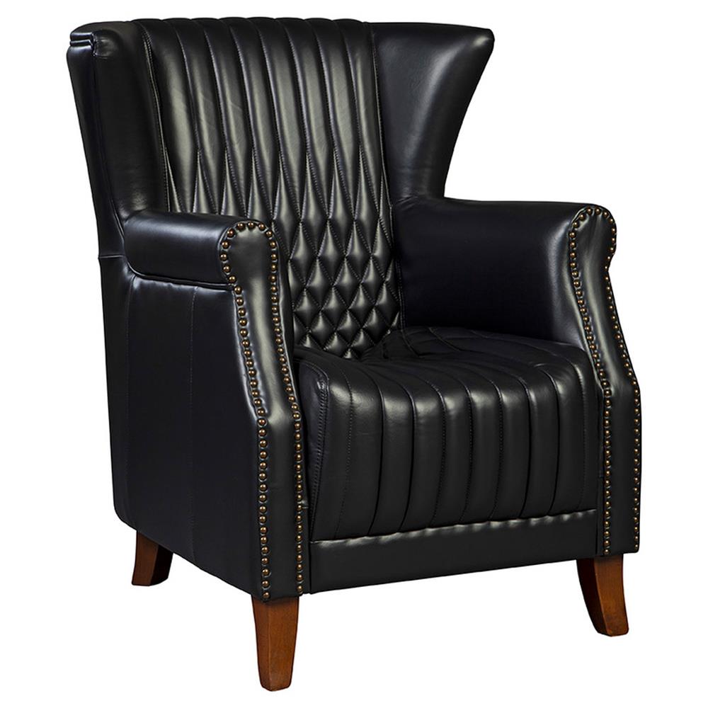 Sherriline Modern Classic Black Upholstered Leather Cushion Wing Chair