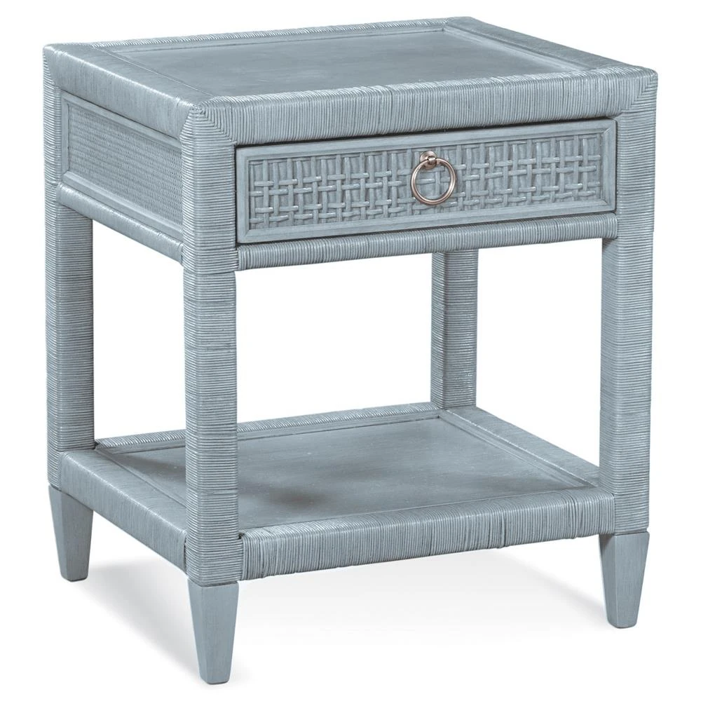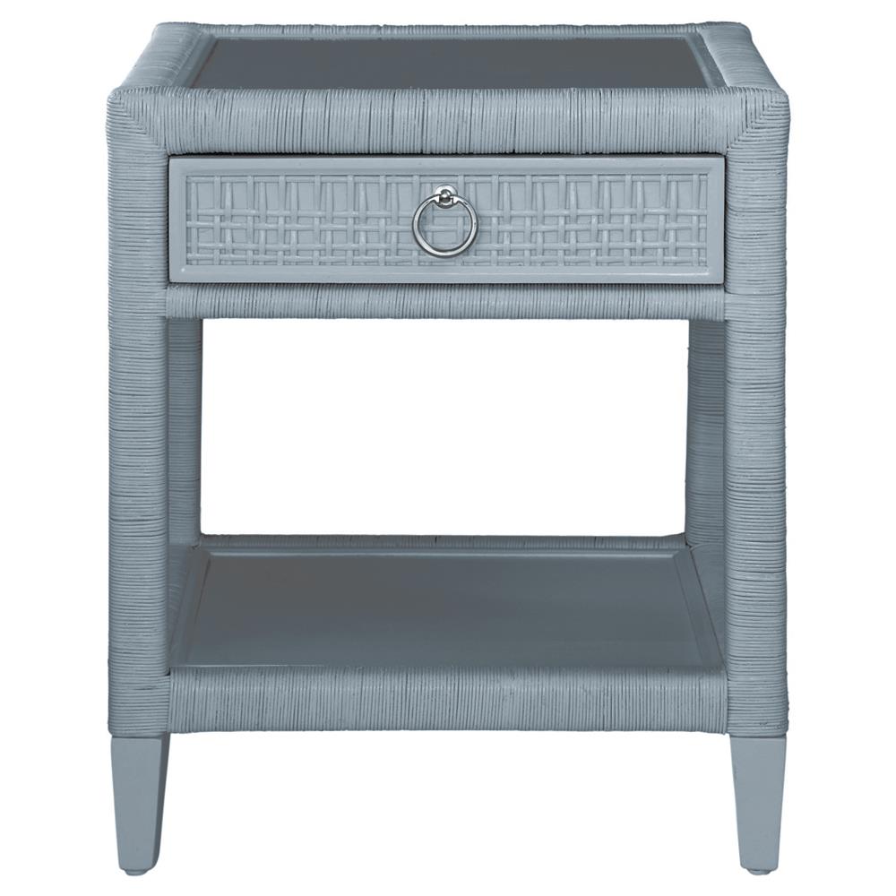• Elliana Coastal Beach Blue Woven Rattan Nightstand|Kathy Kuo Home