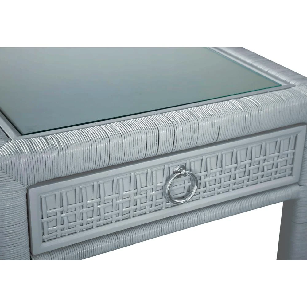 Kalea Coastal Beach Blue Woven Rattan Nightstand