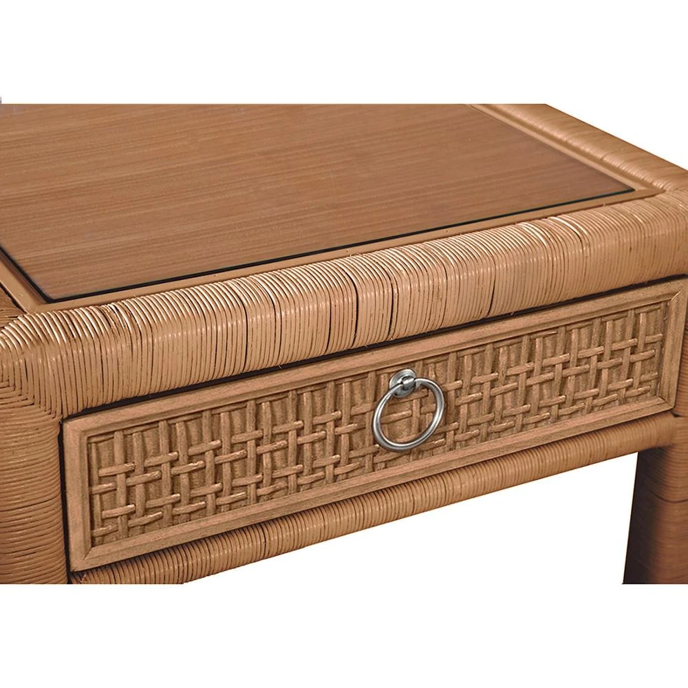 Kalea Coastal Beach Brown Woven Rattan Nightstand