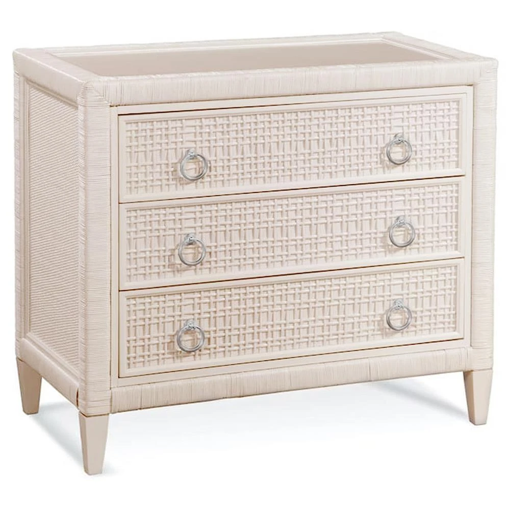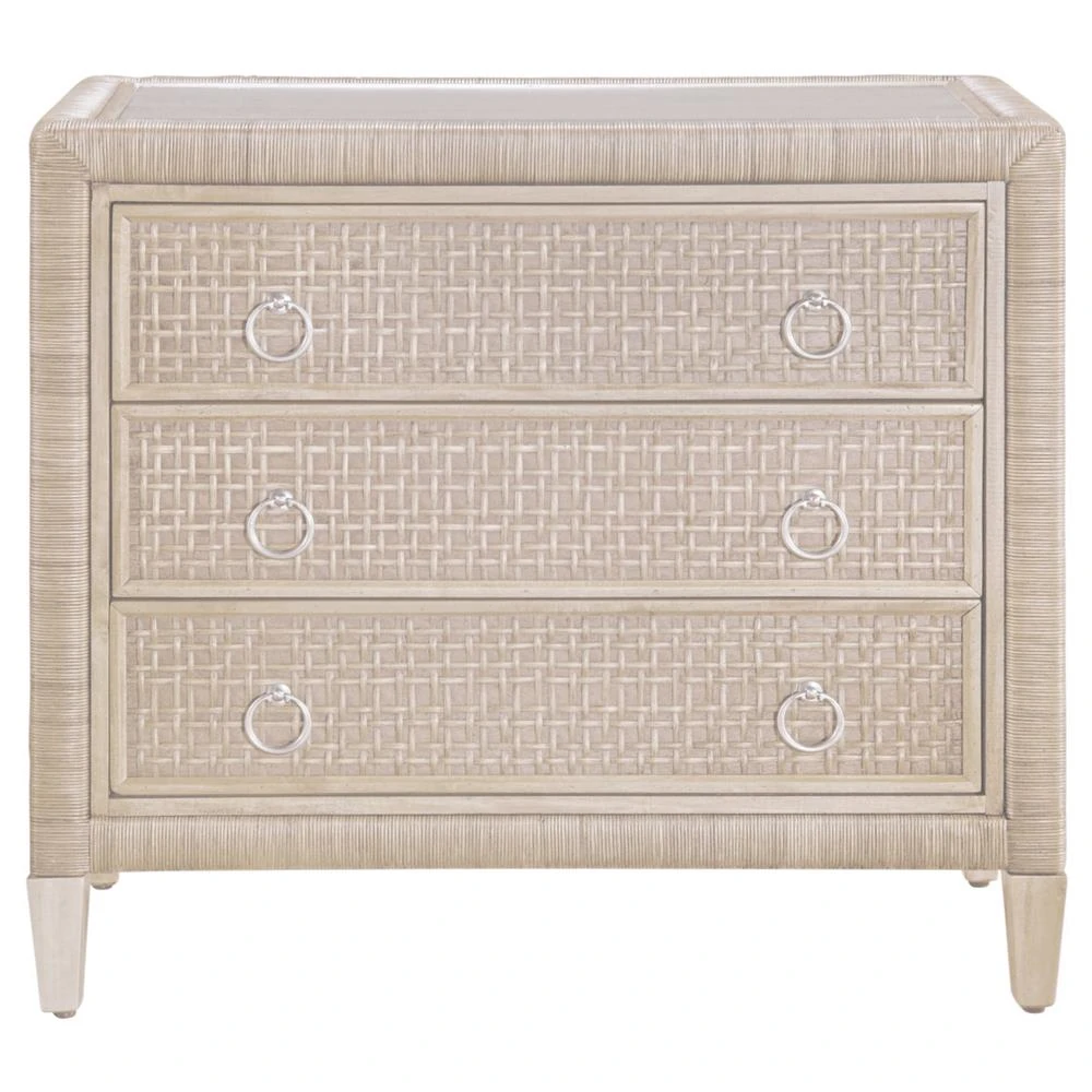 • Elliana Coastal Beach White Woven Rattan Bachelor Chest|Kathy Kuo Home