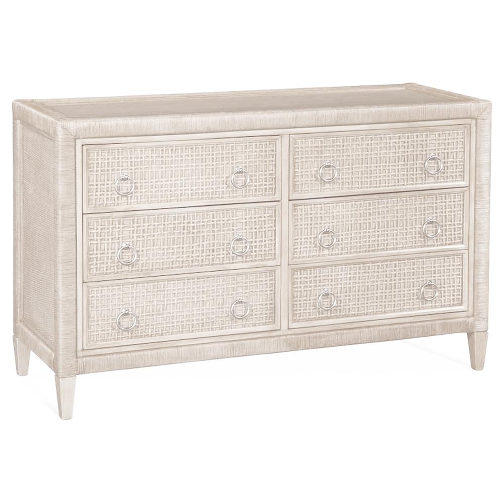 • Brennan Coastal Beach Natural Woven Rattan White Oak Wood Double Dresser|Kathy Kuo Home