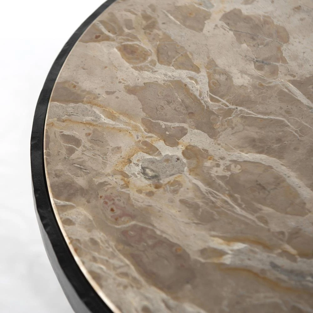 • Leyla French Country Veined White Marble Black Iron Drink Table|Kathy Kuo Home