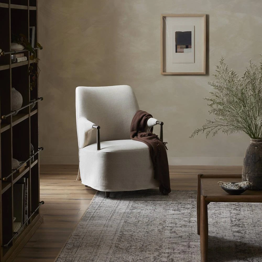 A design collaboration by Amber Lewis and Four Hands. A new take on the classic slipcovered chair, featuring a fixed linen blend slipco ... more