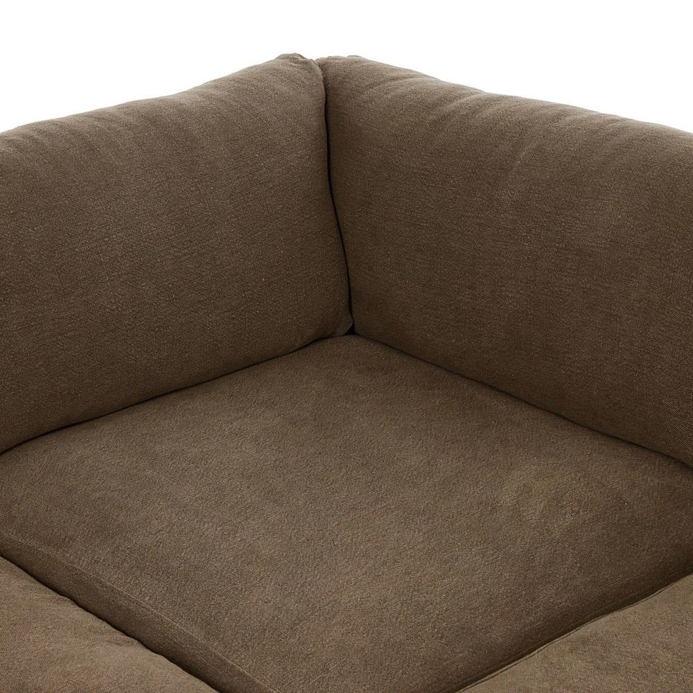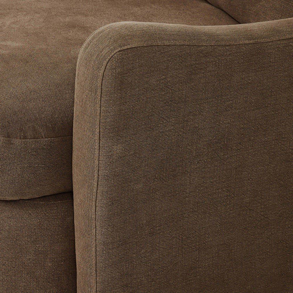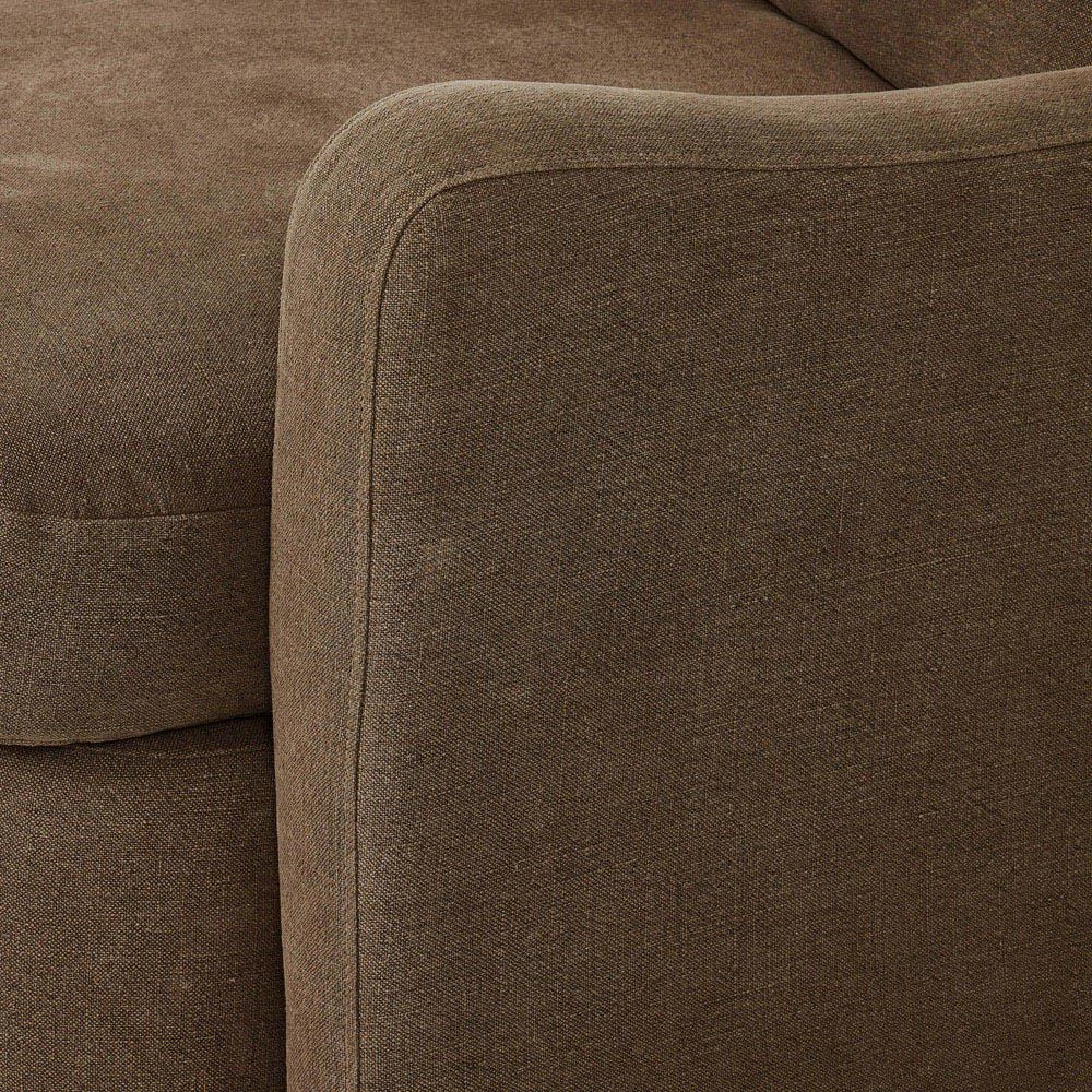• Upholstered in broadway coffee fabric. Fabric content: 100% linen; Filling in cushion: 50% waterfowl feather and 50% polyester fiber;Filling in Body: 100% polyurethane foam; Filling in Seat: 63% polyurethane foam, 30% fiber and 7% down