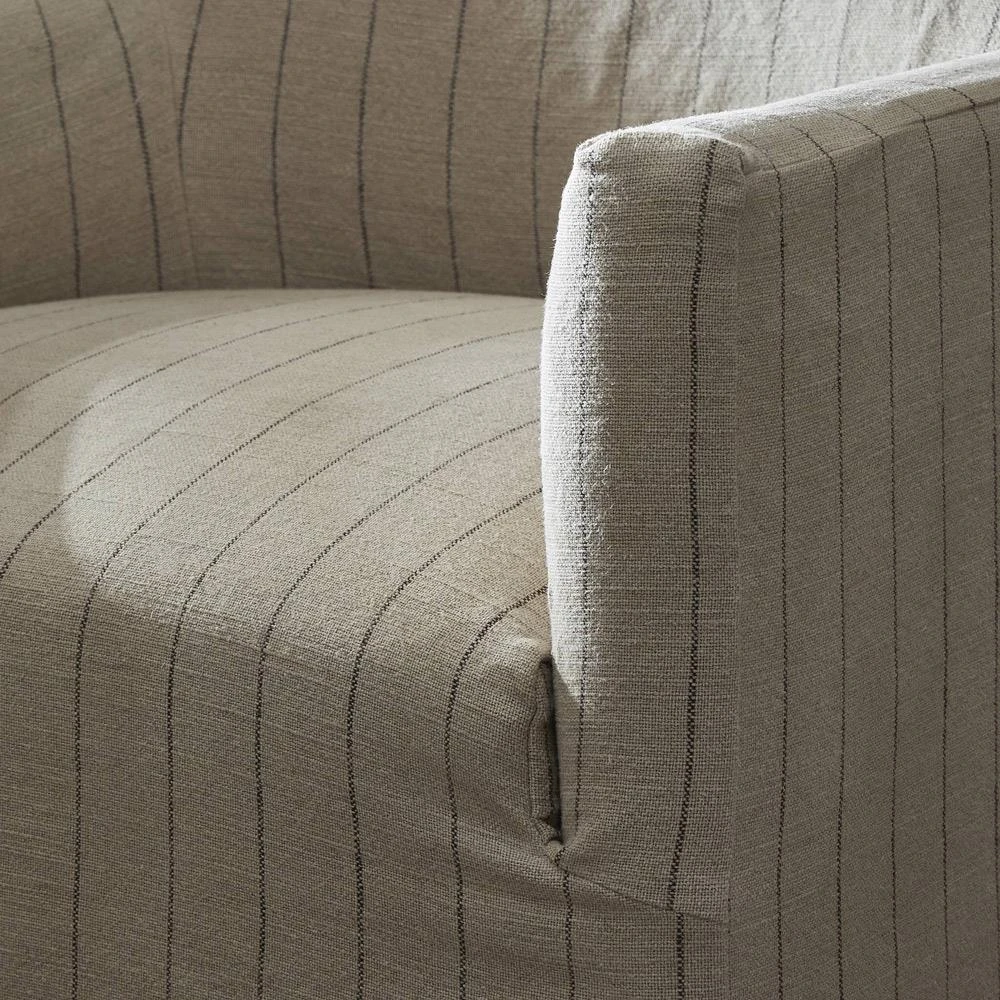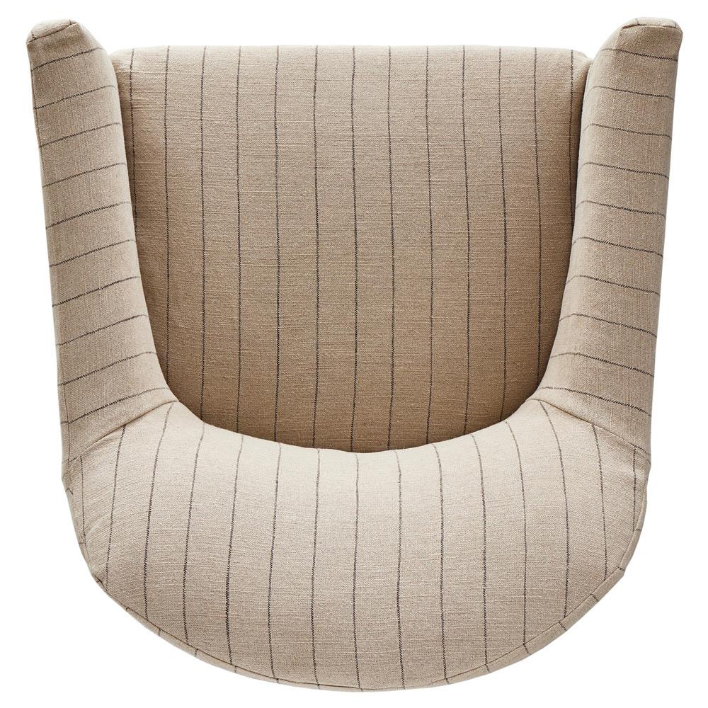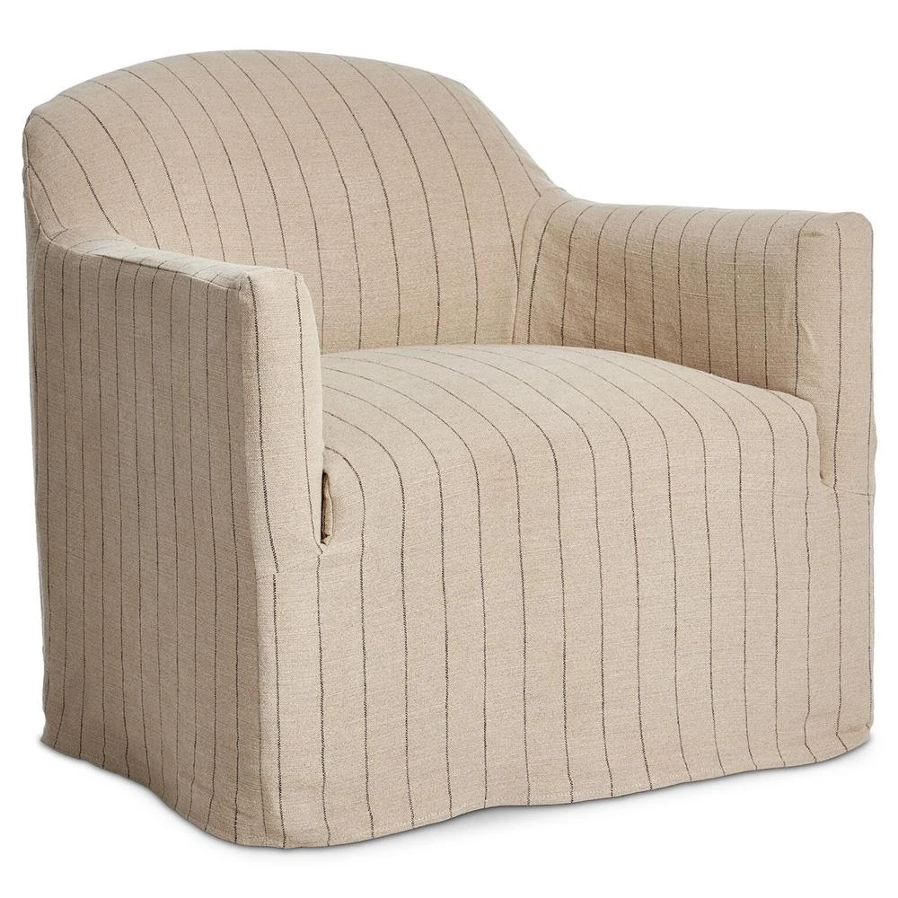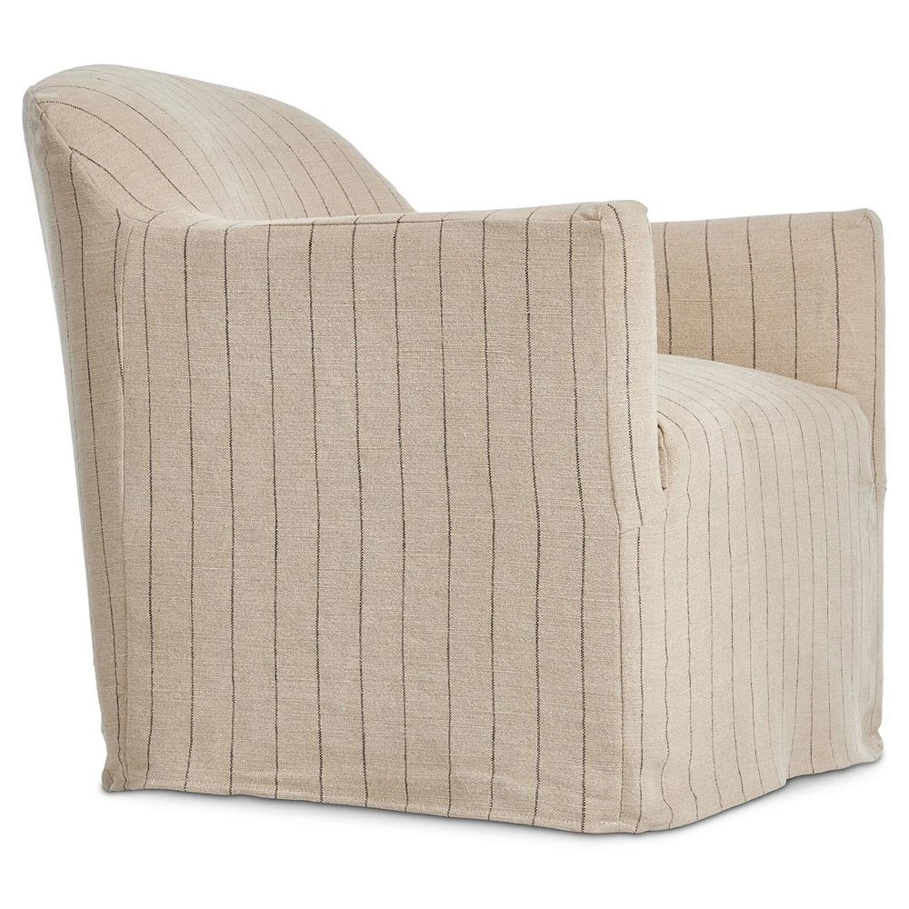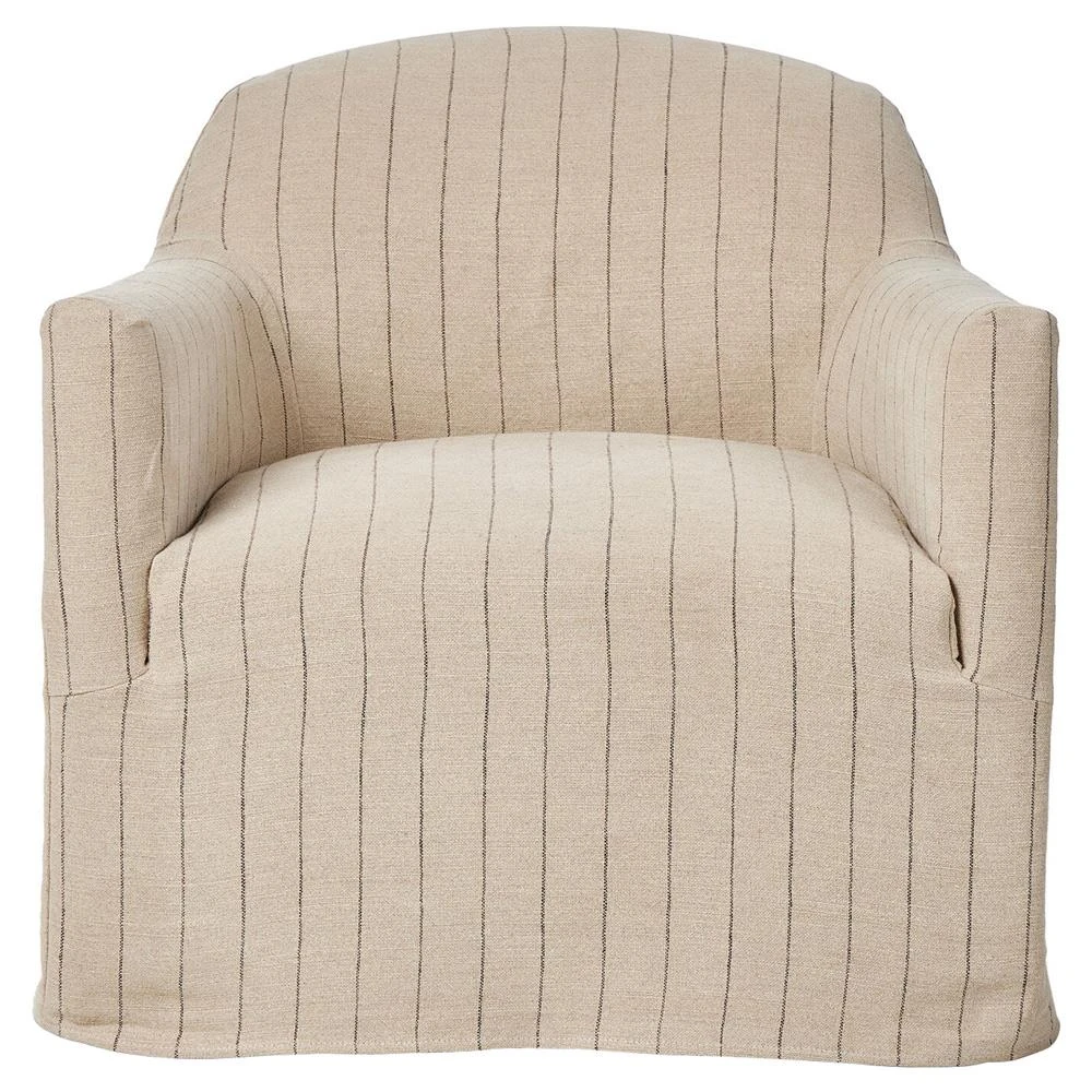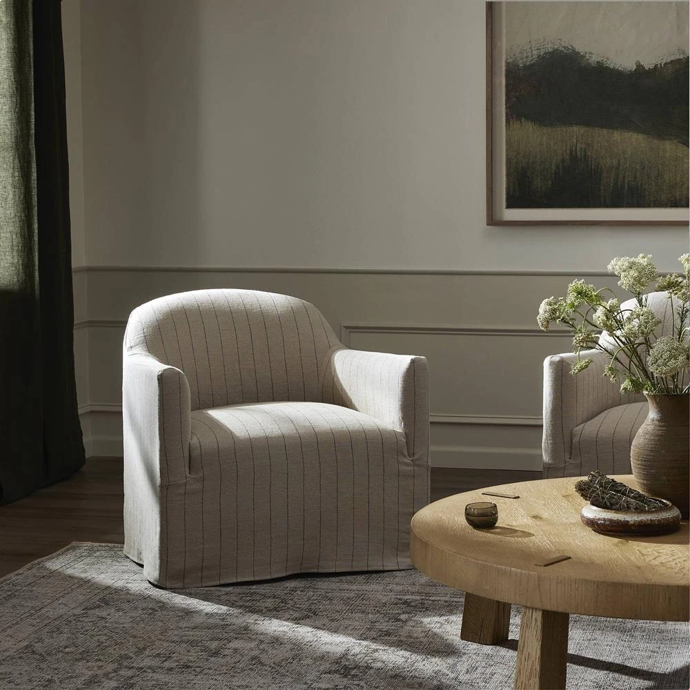 Silas Modern Classic Beige Herringbone Upholstered Slipcovered Swivel Arm Chair