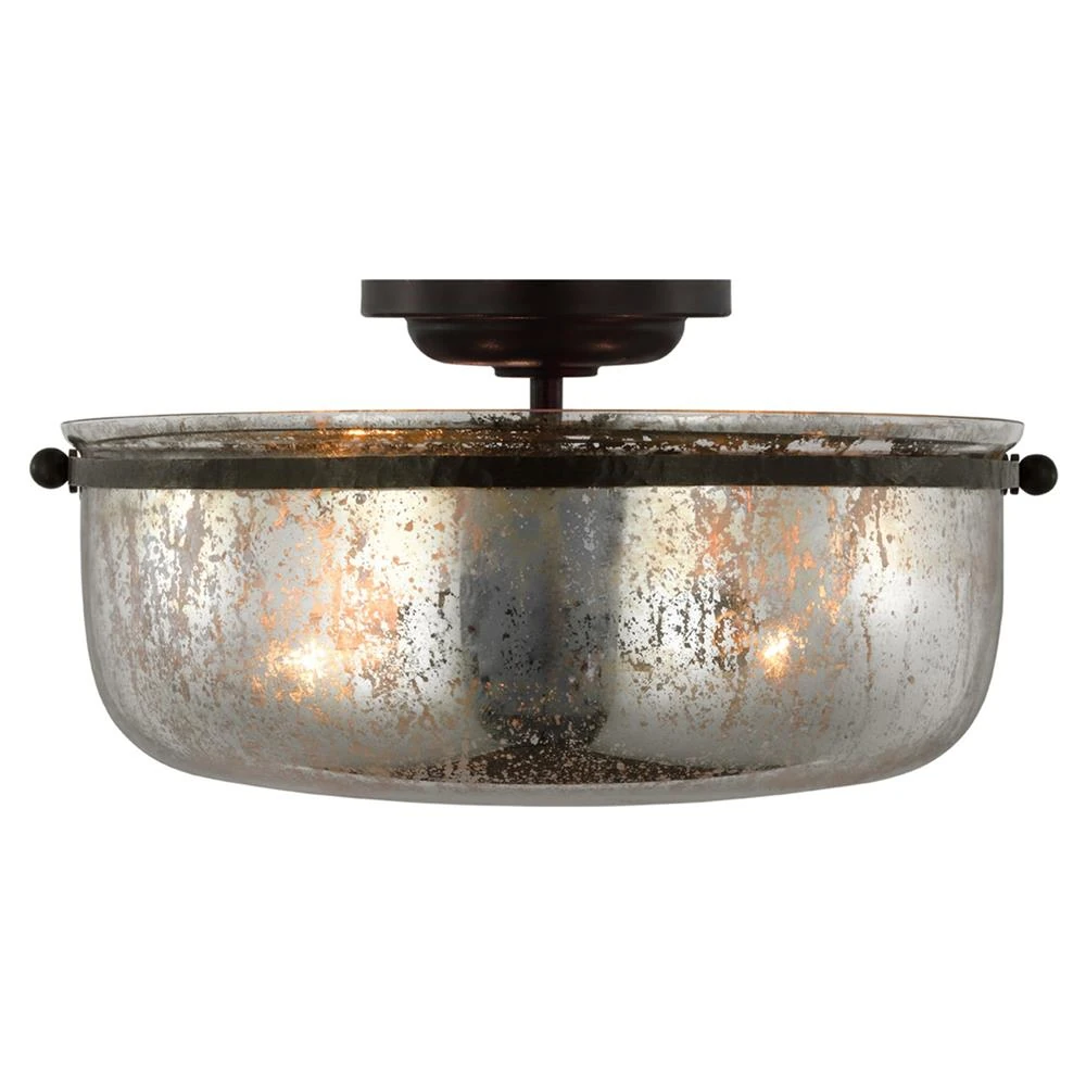 Visual Comfort Lorford French Aged Iron Mercury Glass Semi Flush Mount