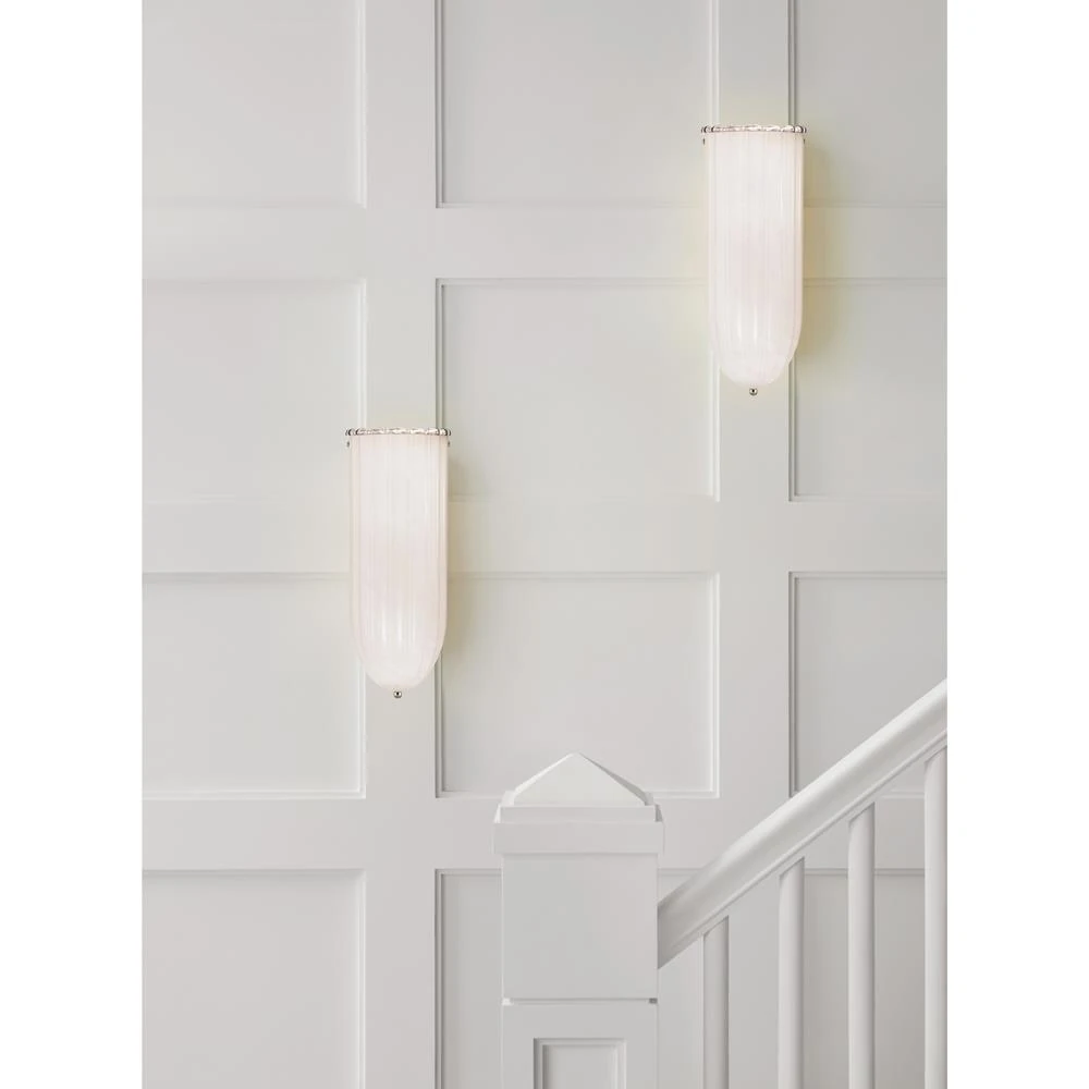 Visual Comfort Rosehill Modern Polished Nickel White Strie Glass Linear Sconce