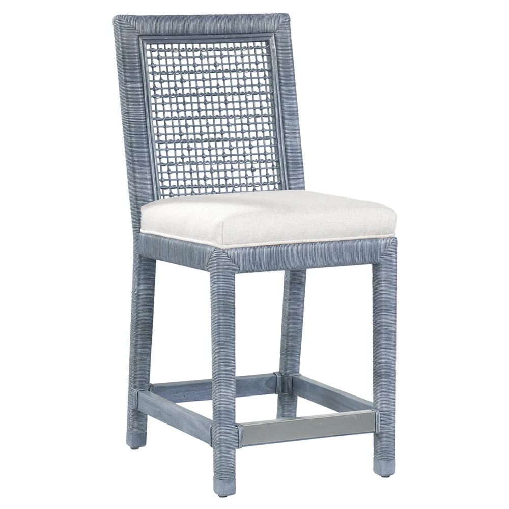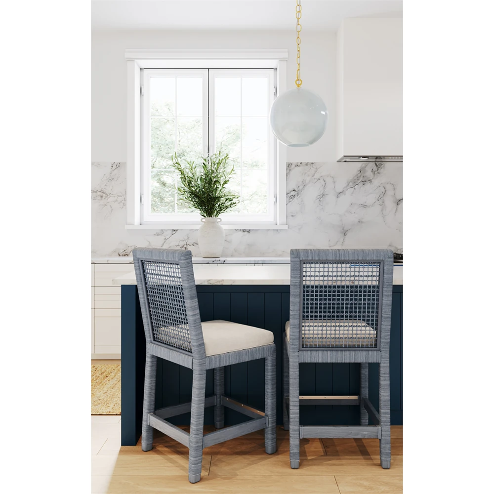 • Bella Coastal Beach Grey Performance Blue Rattan Counter Stool|Kathy Kuo Home