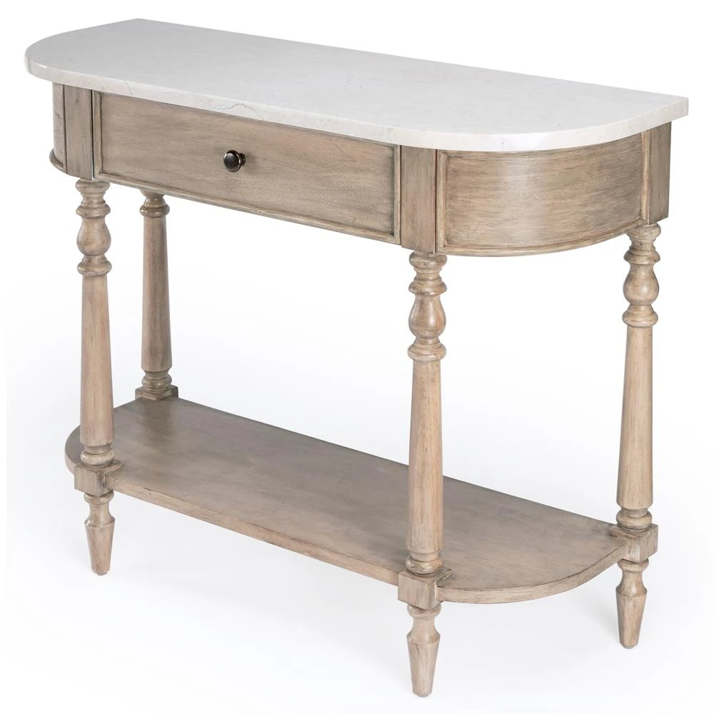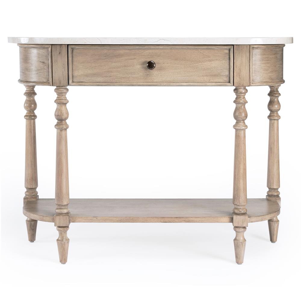• Mimi French Country Grey Wood Demilune Console Table|Kathy Kuo Home