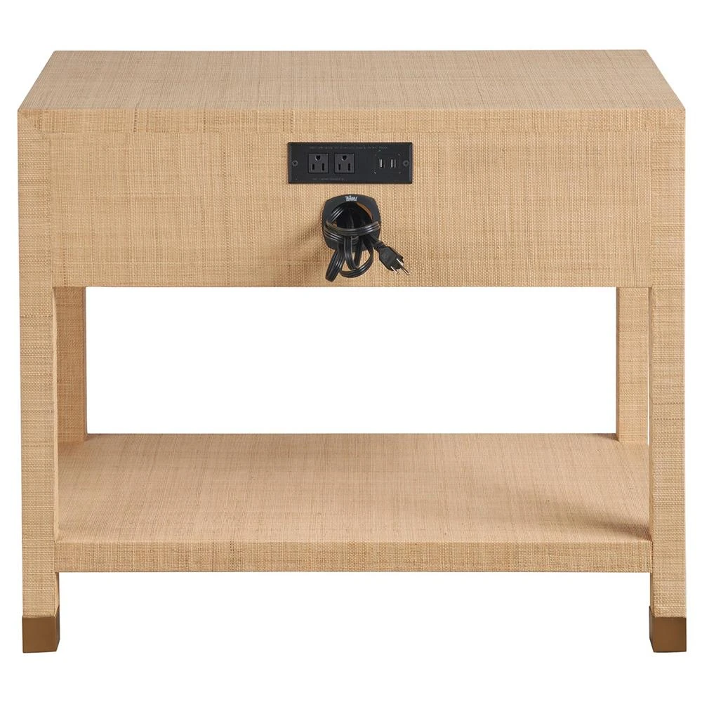 • Elliana Coastal Beach Cream Woven Rattan Nightstand|Kathy Kuo Home
