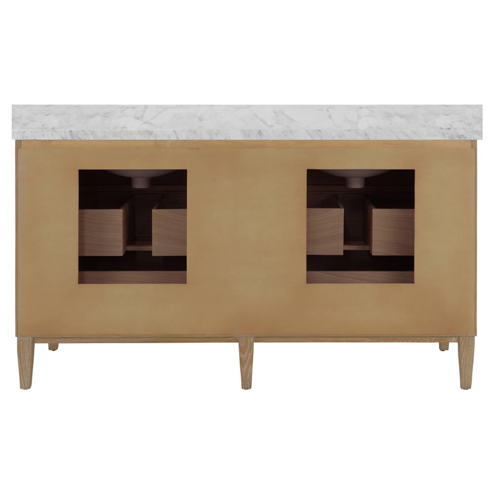 • Cynthia Modern Classic Carrara Marble Bleached Oak Double Vanity Sink - 60"|Kathy Kuo Home