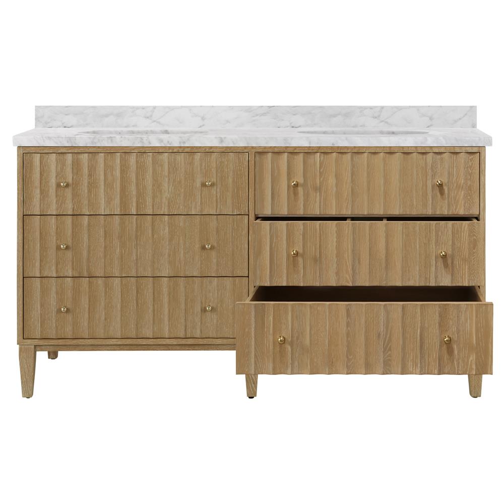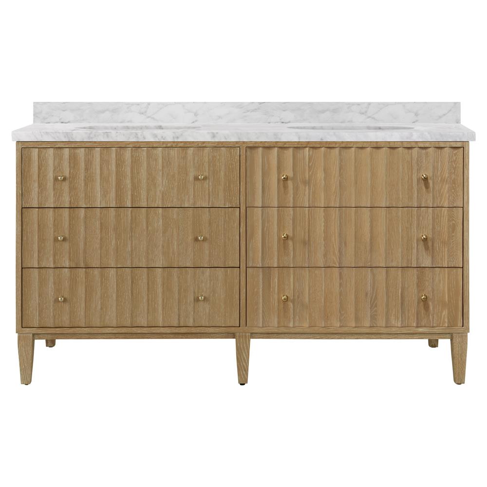 Cynthia Modern Classic Carrara Marble Bleached Oak Double Vanity Sink - 60"