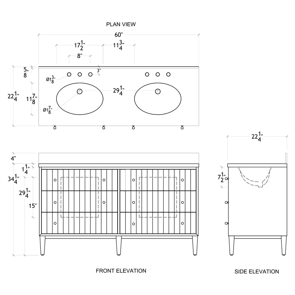 • 34.25 inches high x 60 inches wide x 22.25 inches deep