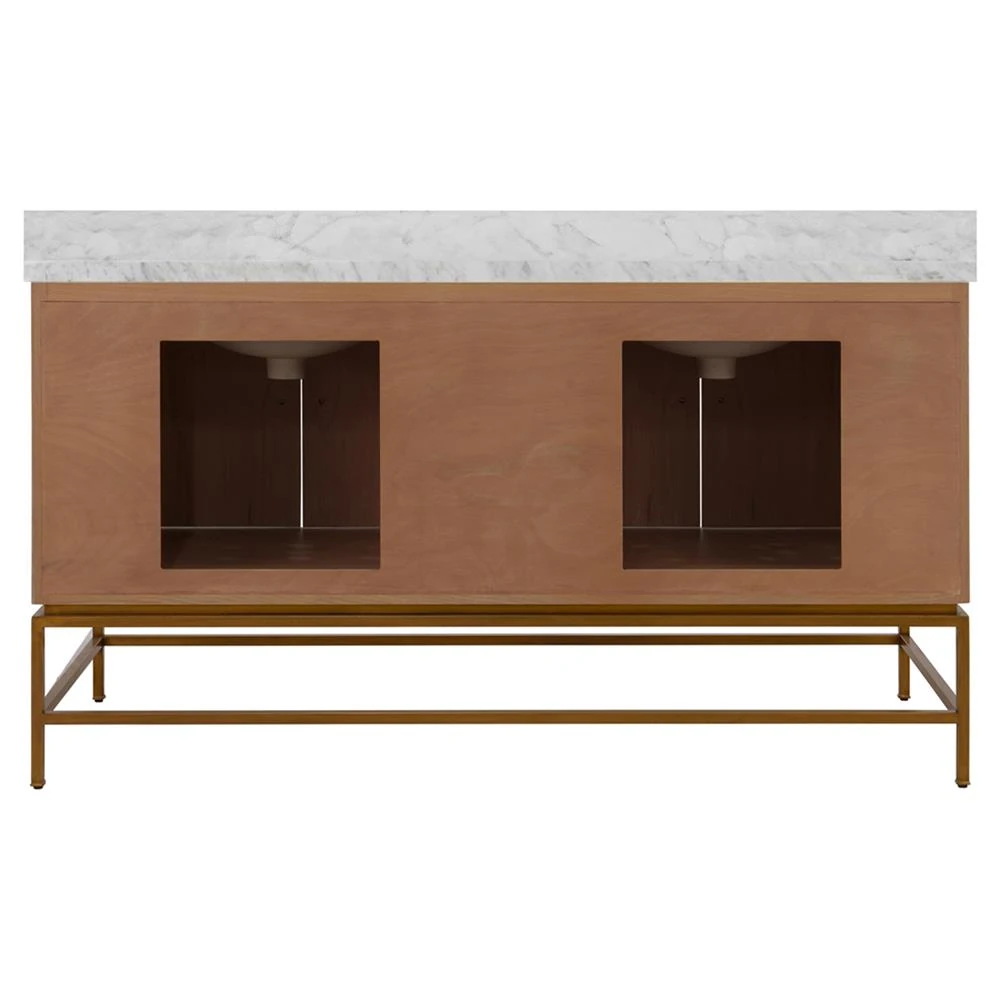 • Allissa Modern Classic Carrara Marble Natural Oak Wide Vanity Sink - 55"|Kathy Kuo Home