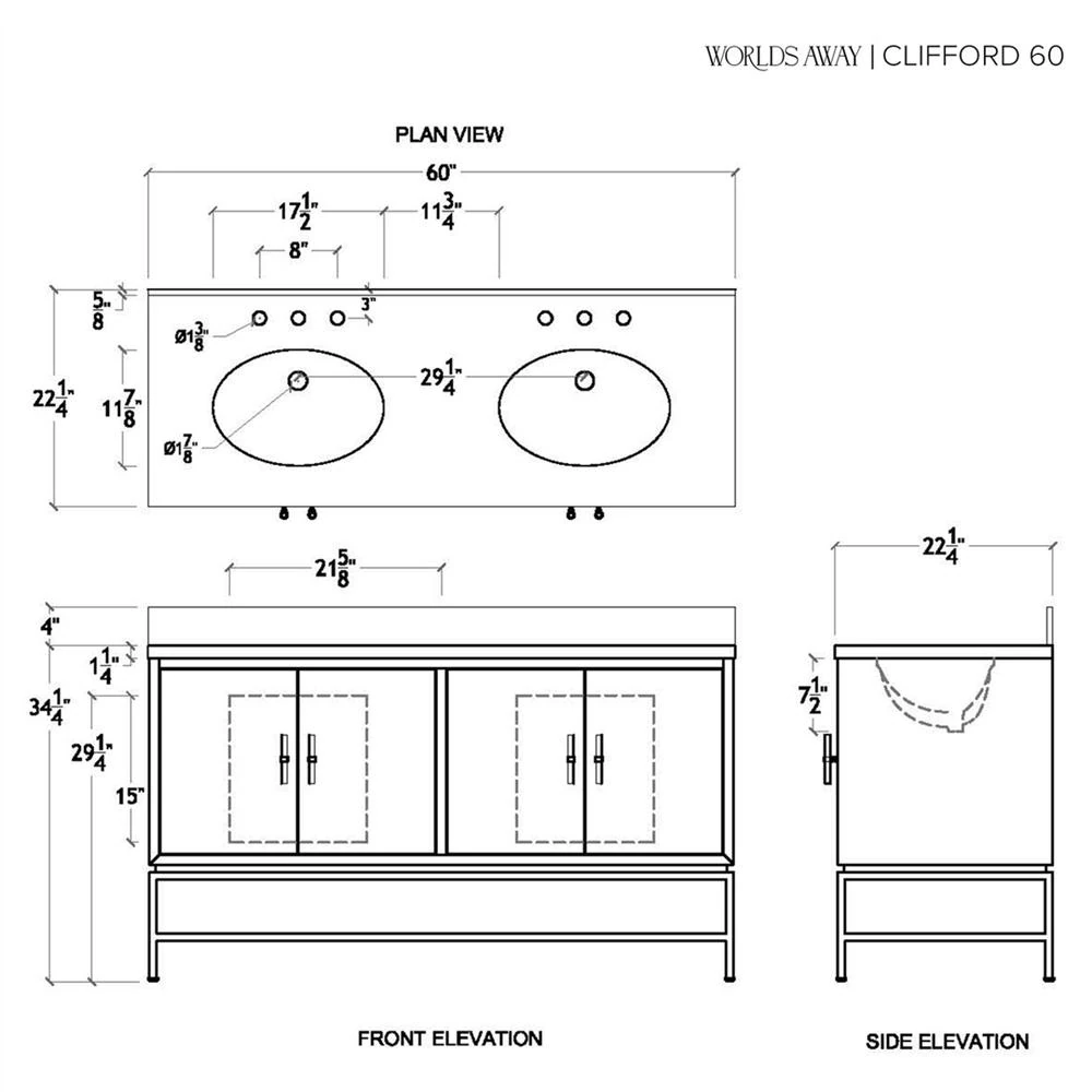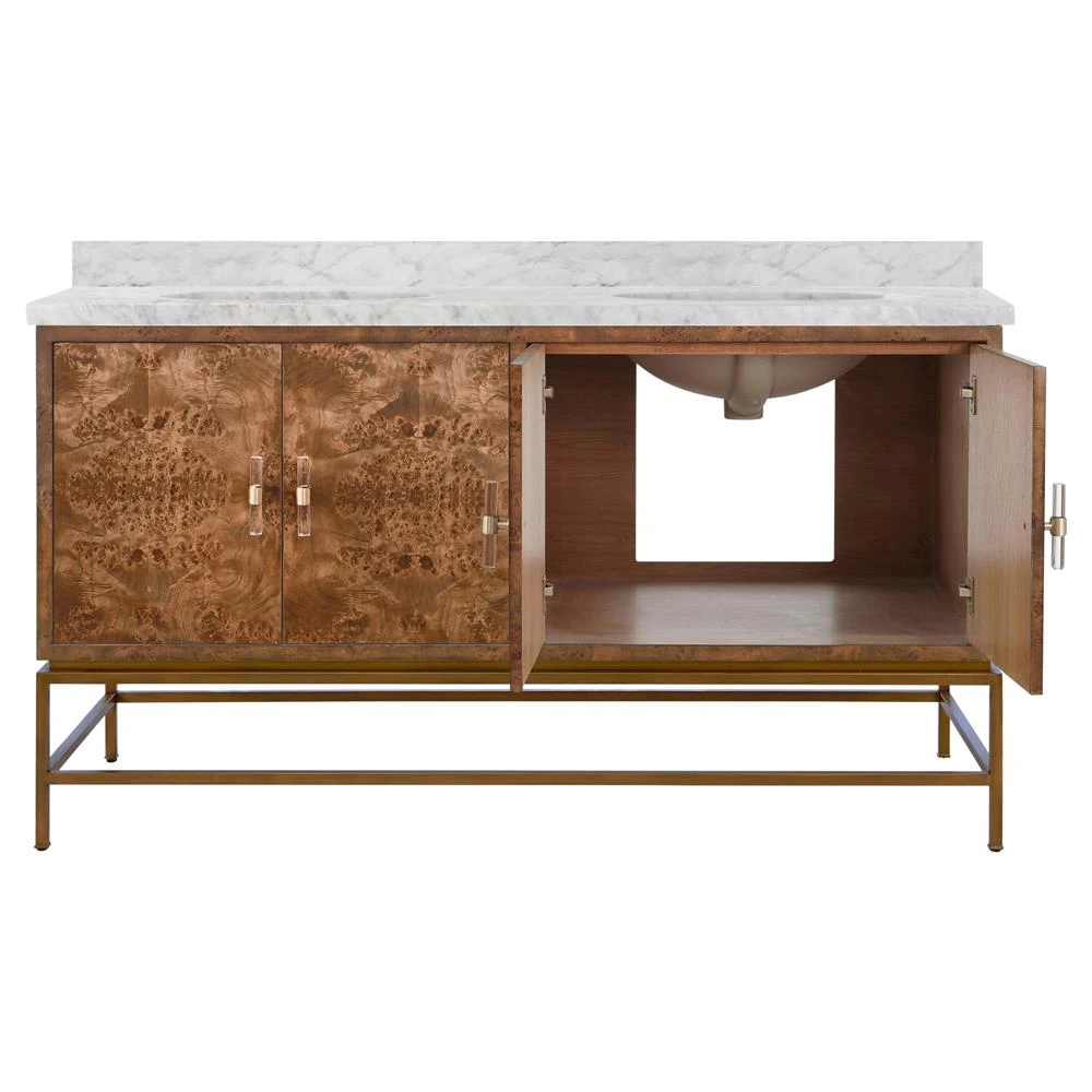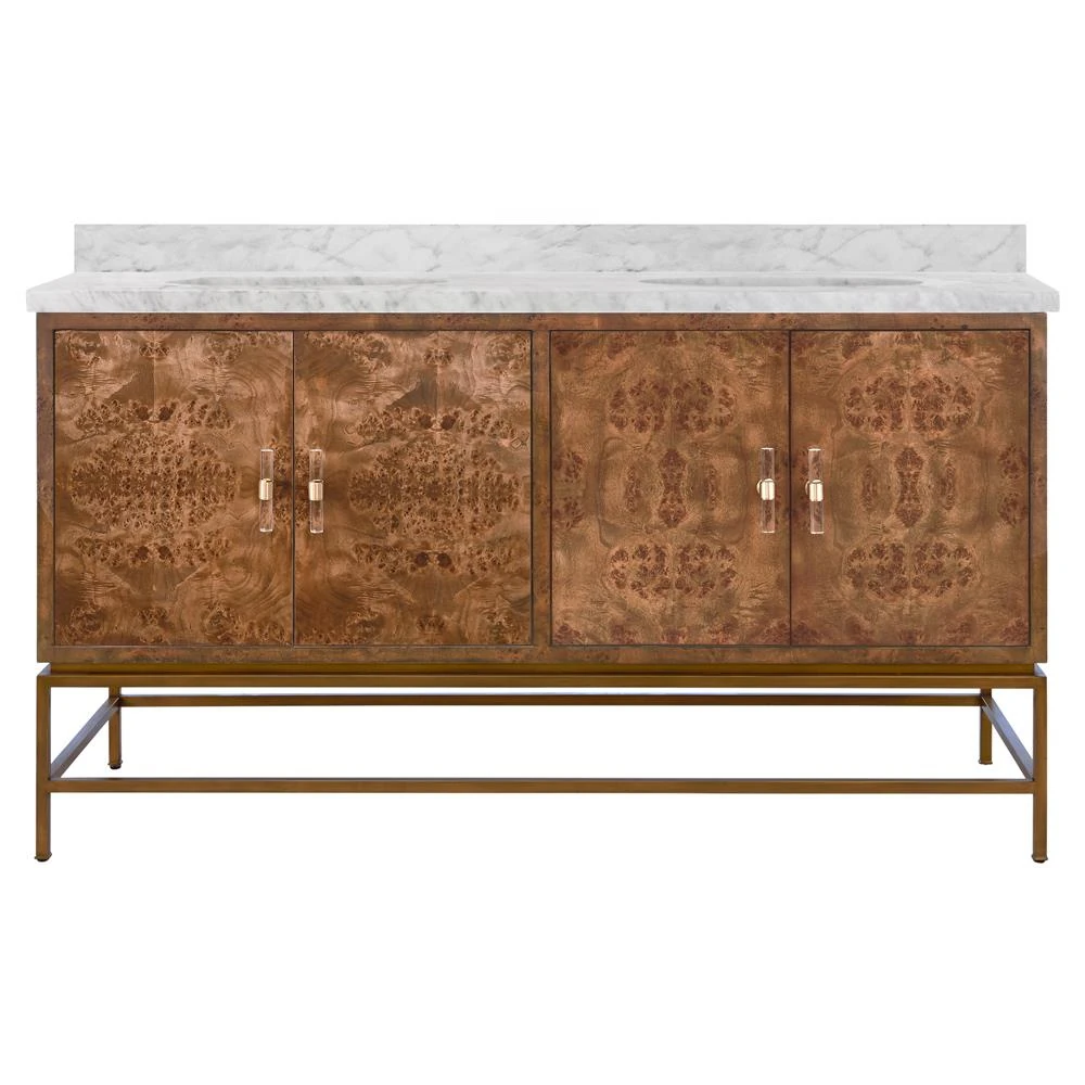 Worlds Away Clifford White Marble Dark Burl Oak Double Vanity Sink - 60"