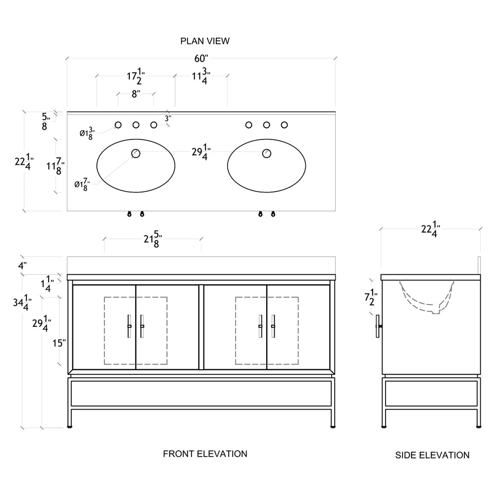 • 34.25 inches high x 60 inches wide x 22.25 inches deep