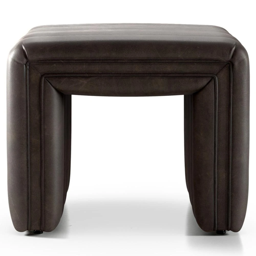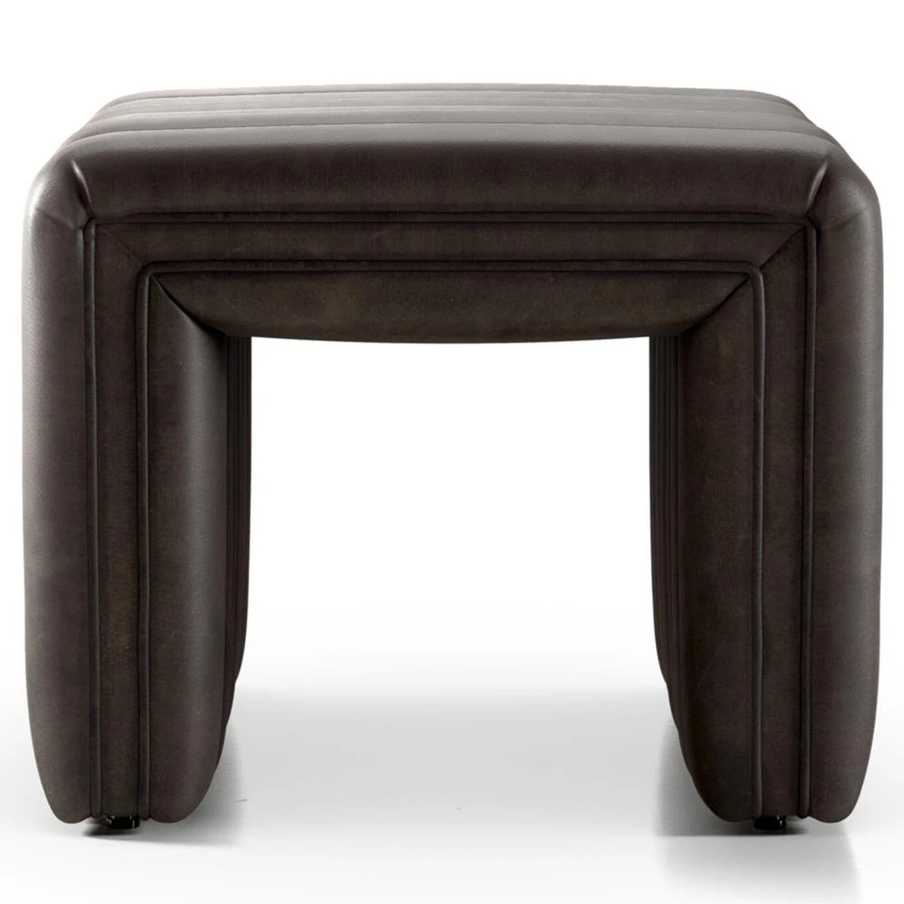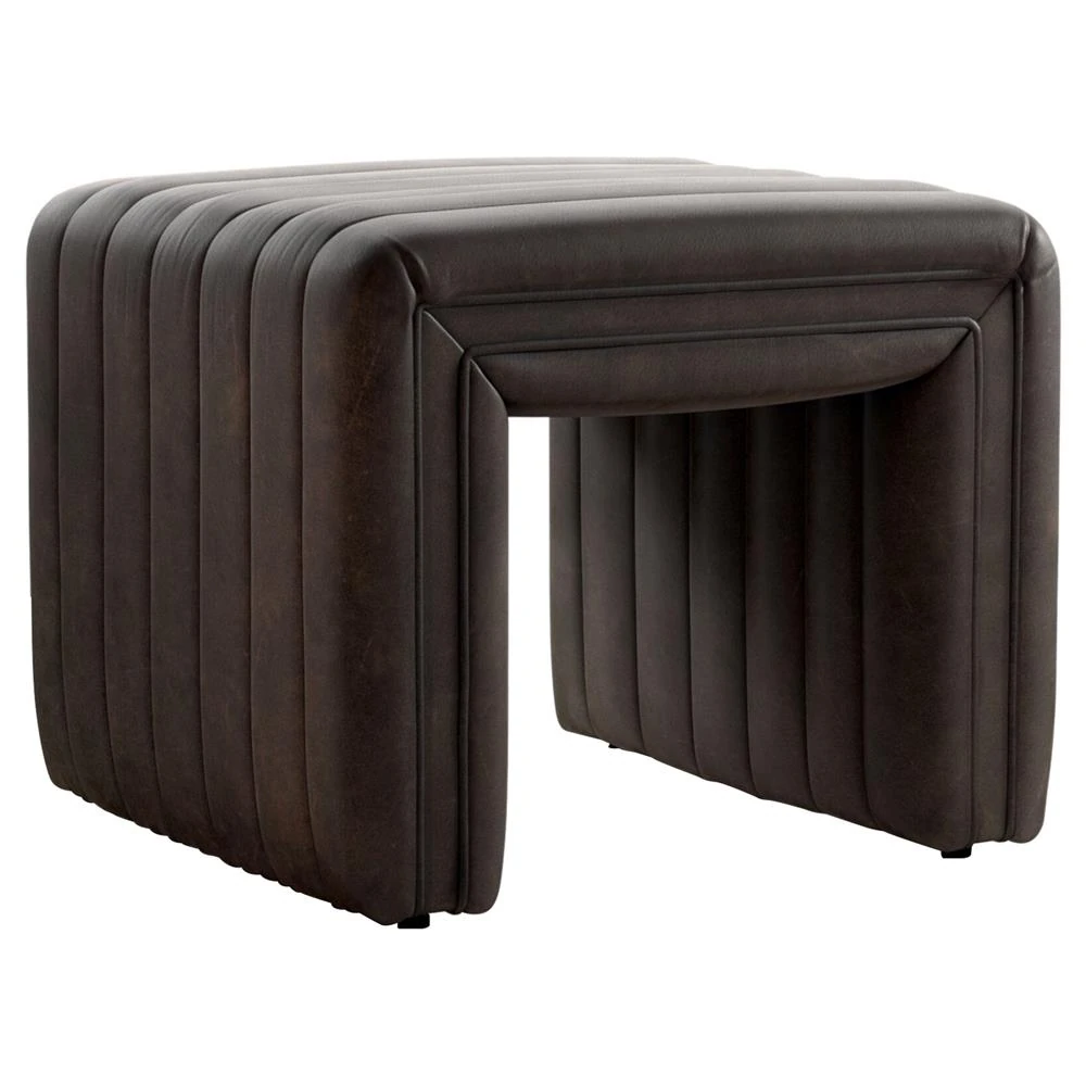 Leo Mid Century Modern Dark Brown Leather Ottoman