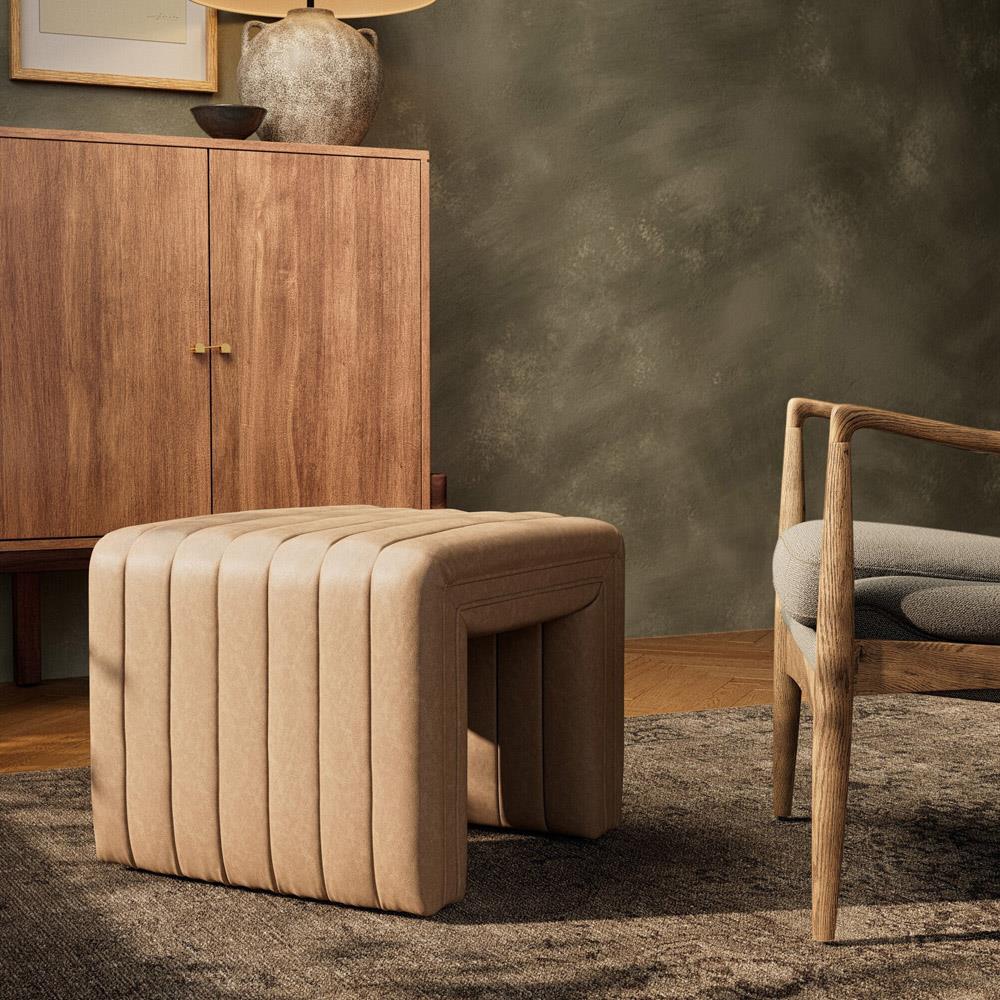 Sherriline Modern Classic Brown Upholstered Leather Cushion Ottoman