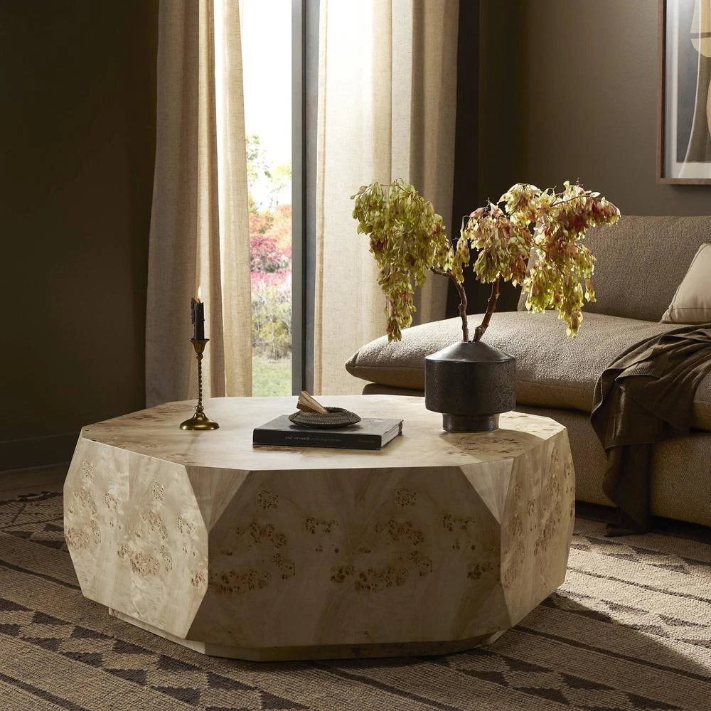 Daphne Modern Classic Light Burl Round Drum Coffee Table