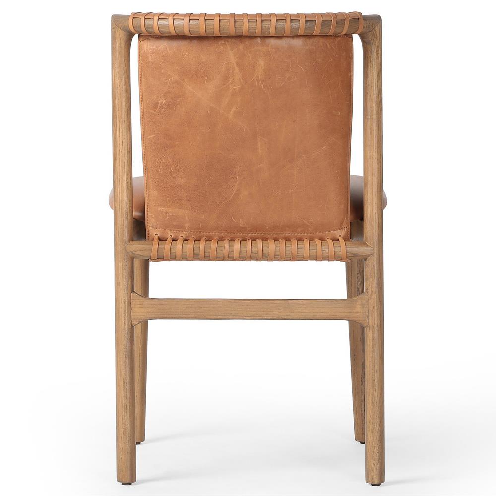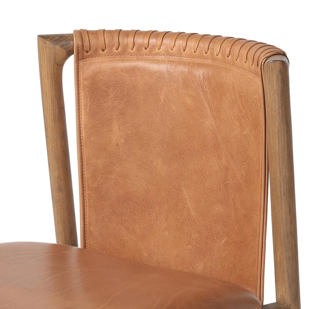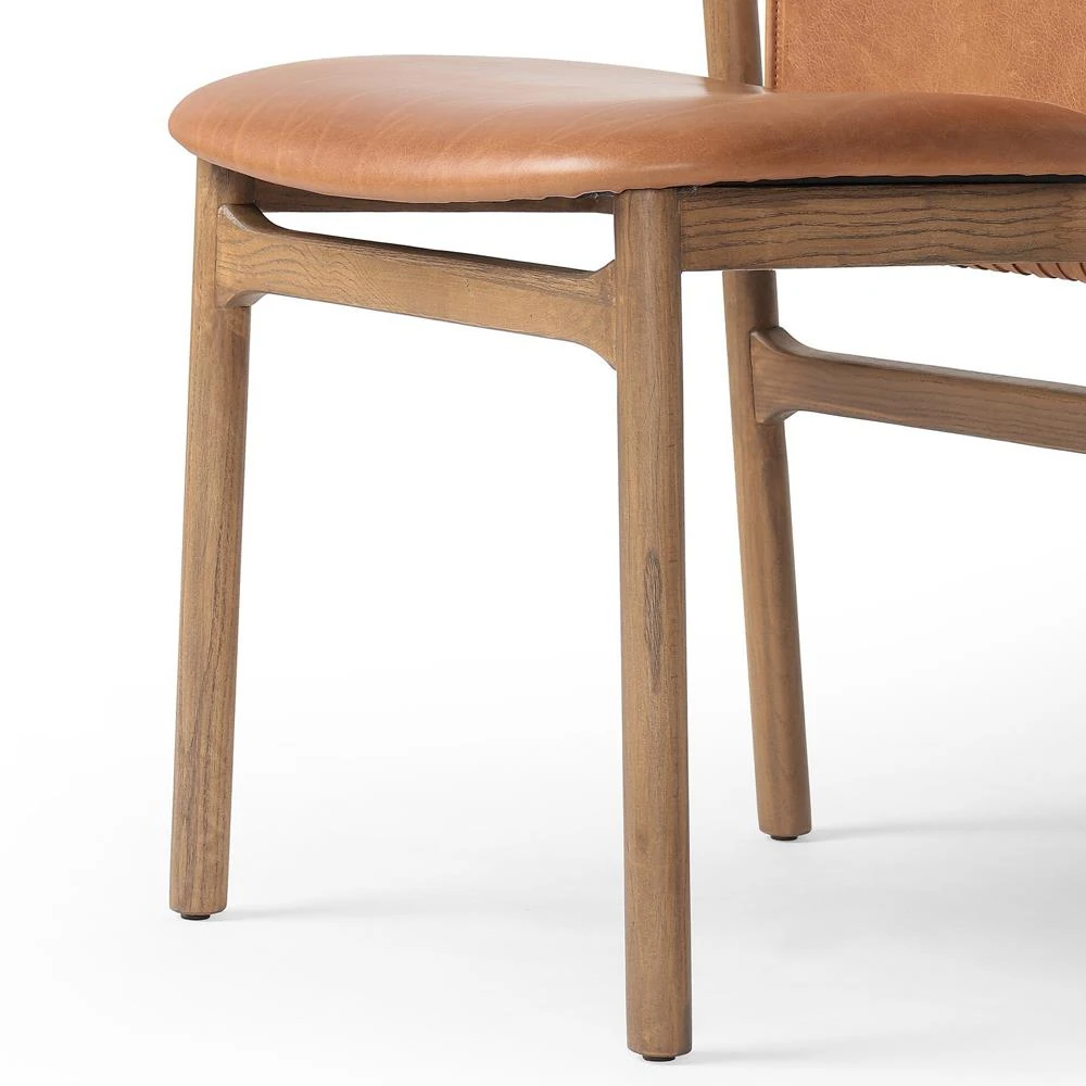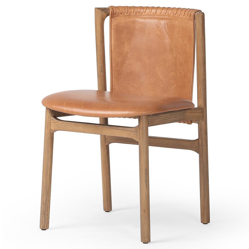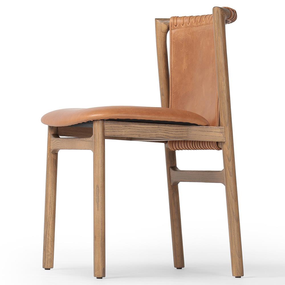 Blaise Rustic Lodge Brown Leather Natural Wood Dining Side Chair