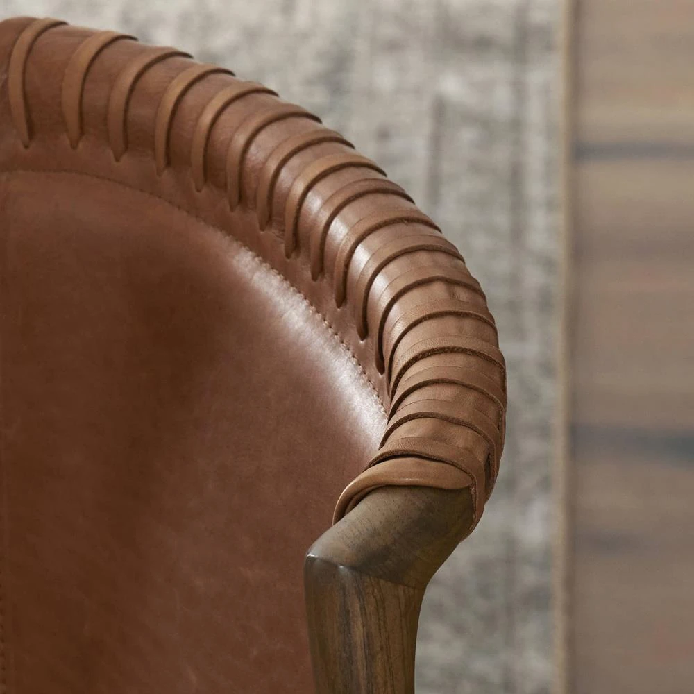 • Upholstered in brown top-grain leather
