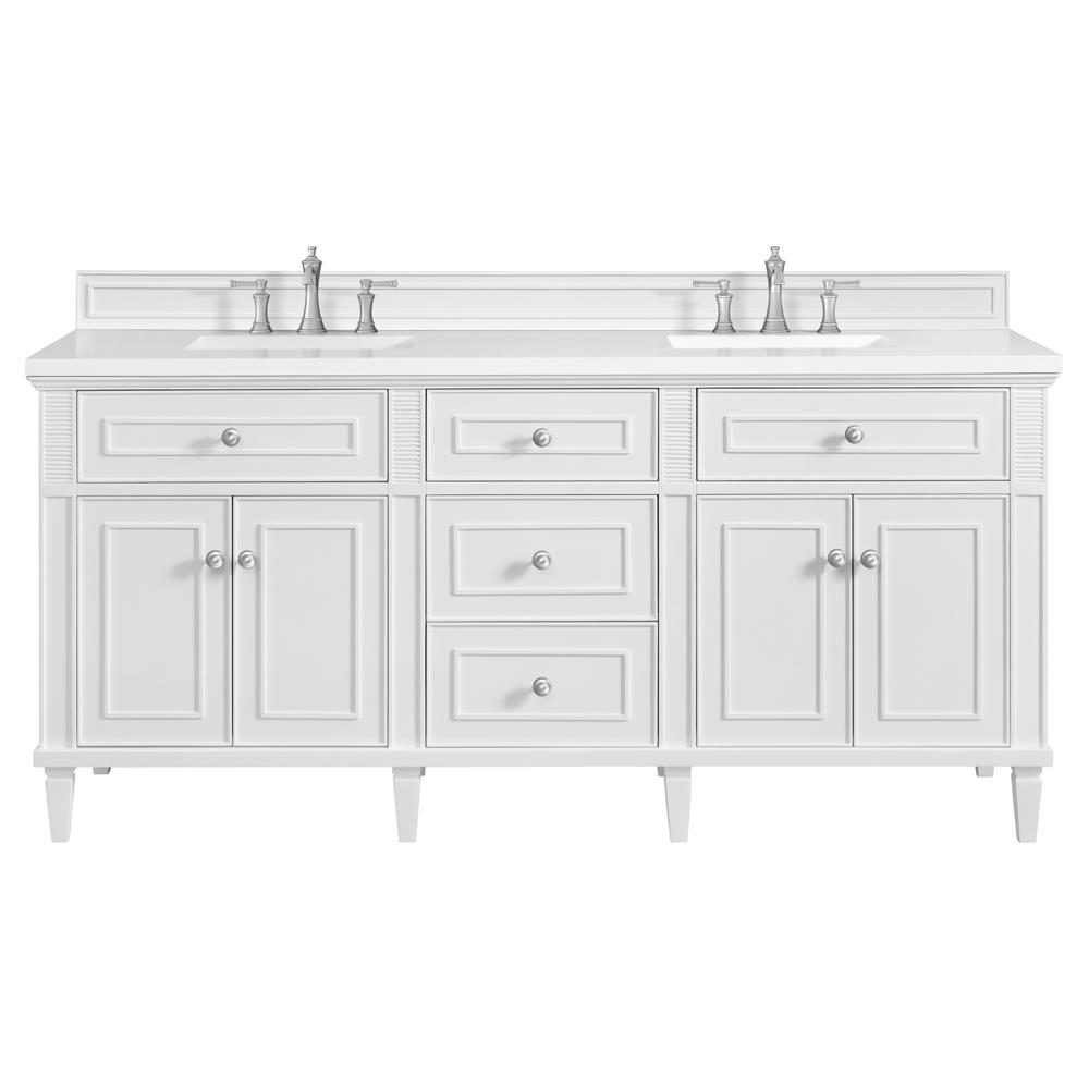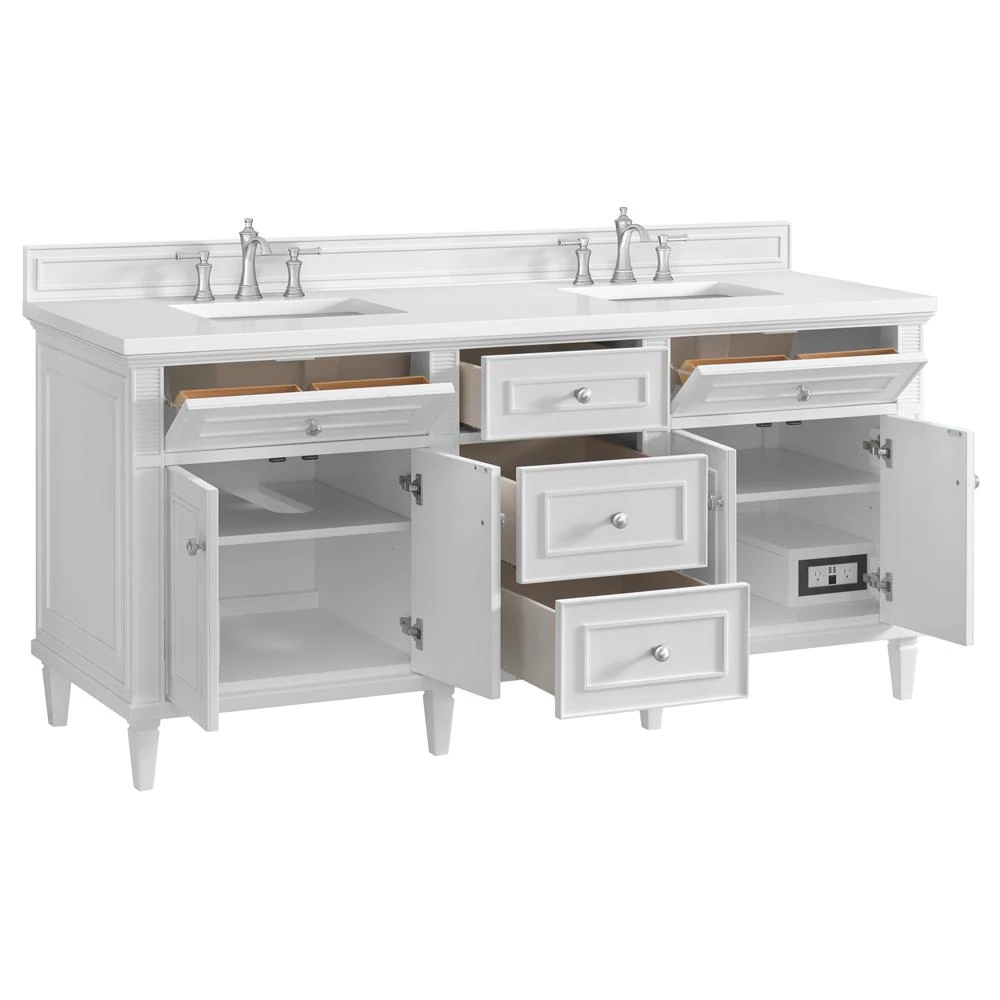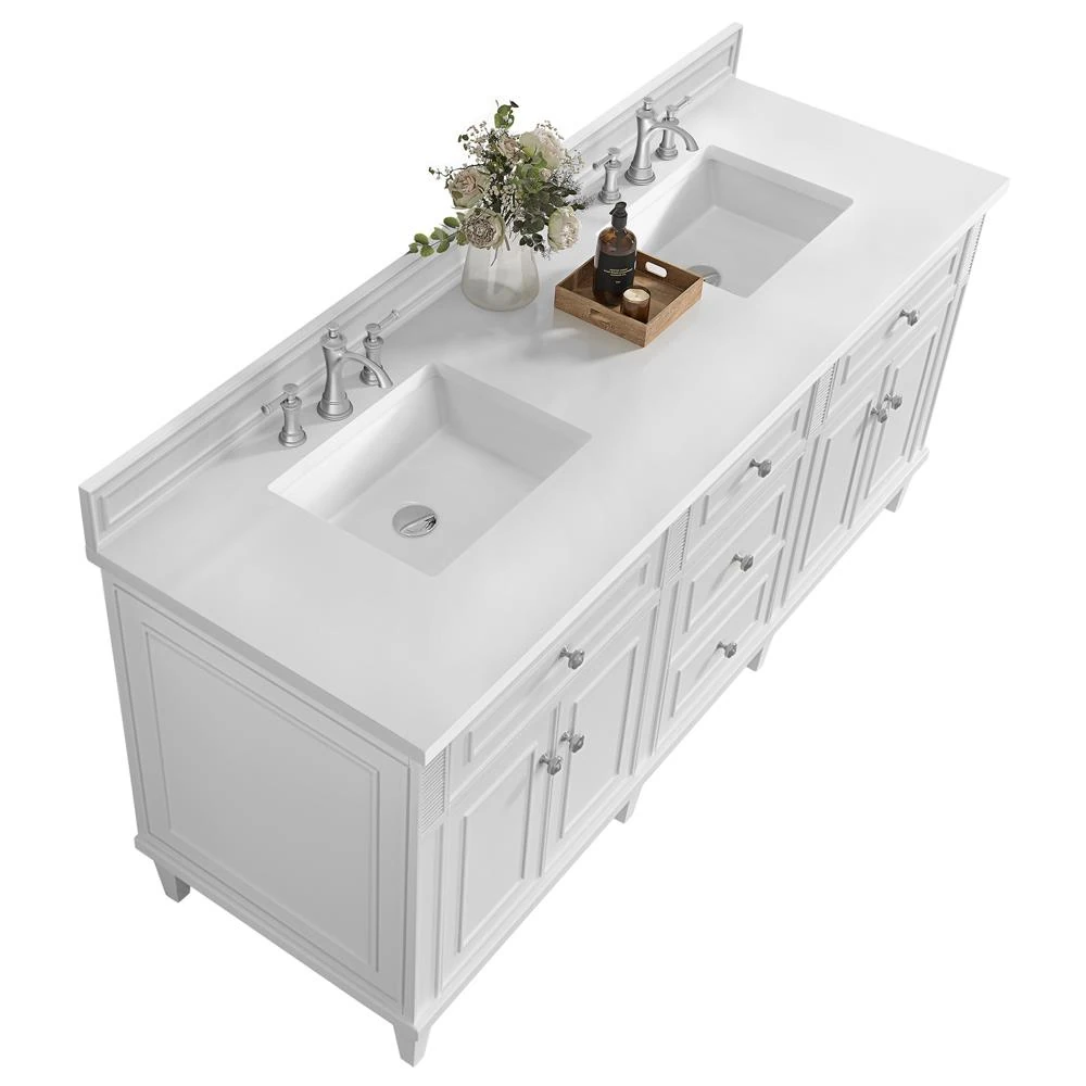 Gareth French Country White Zeus Quartz White Wood Double Vanity Sink - 72"