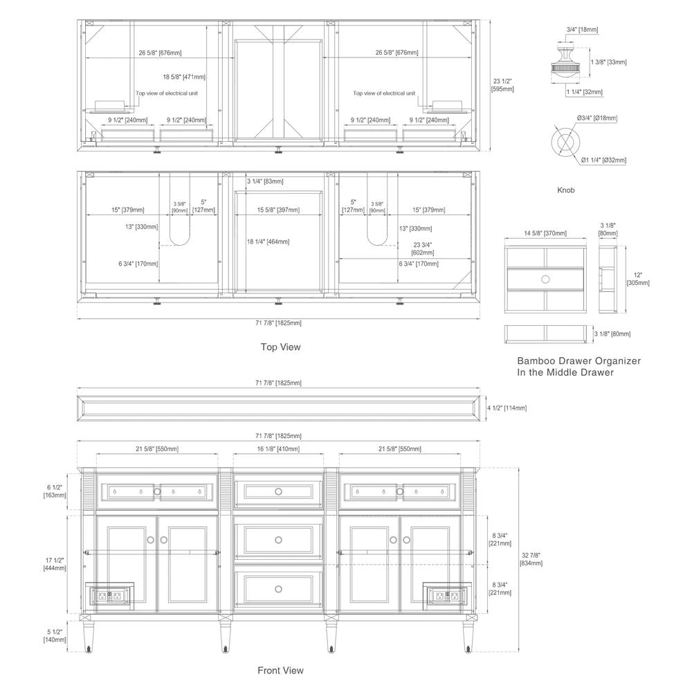 • 34 inches high x 72 inches wide x 23.5 inches deep
