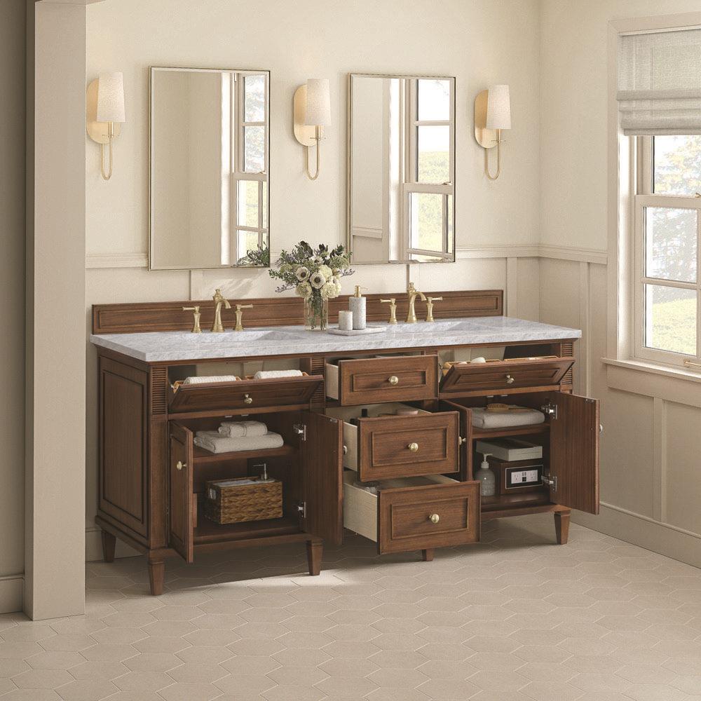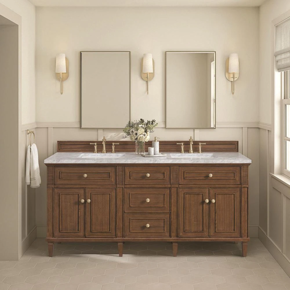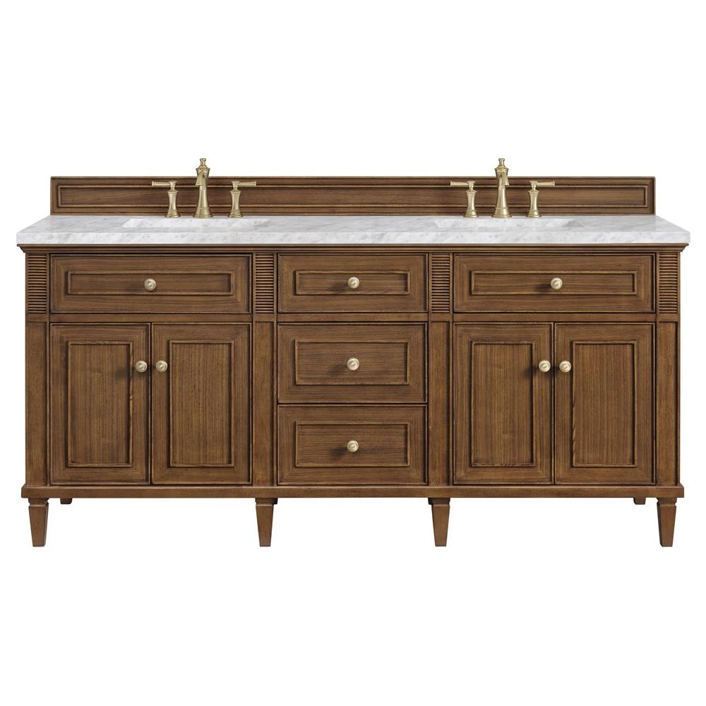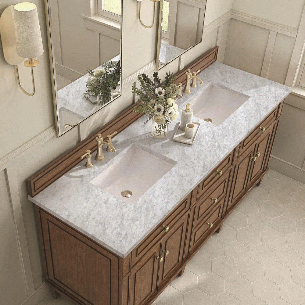 Gareth French Country Carrara Marble Brown Wood Double Vanity Sink - 72"