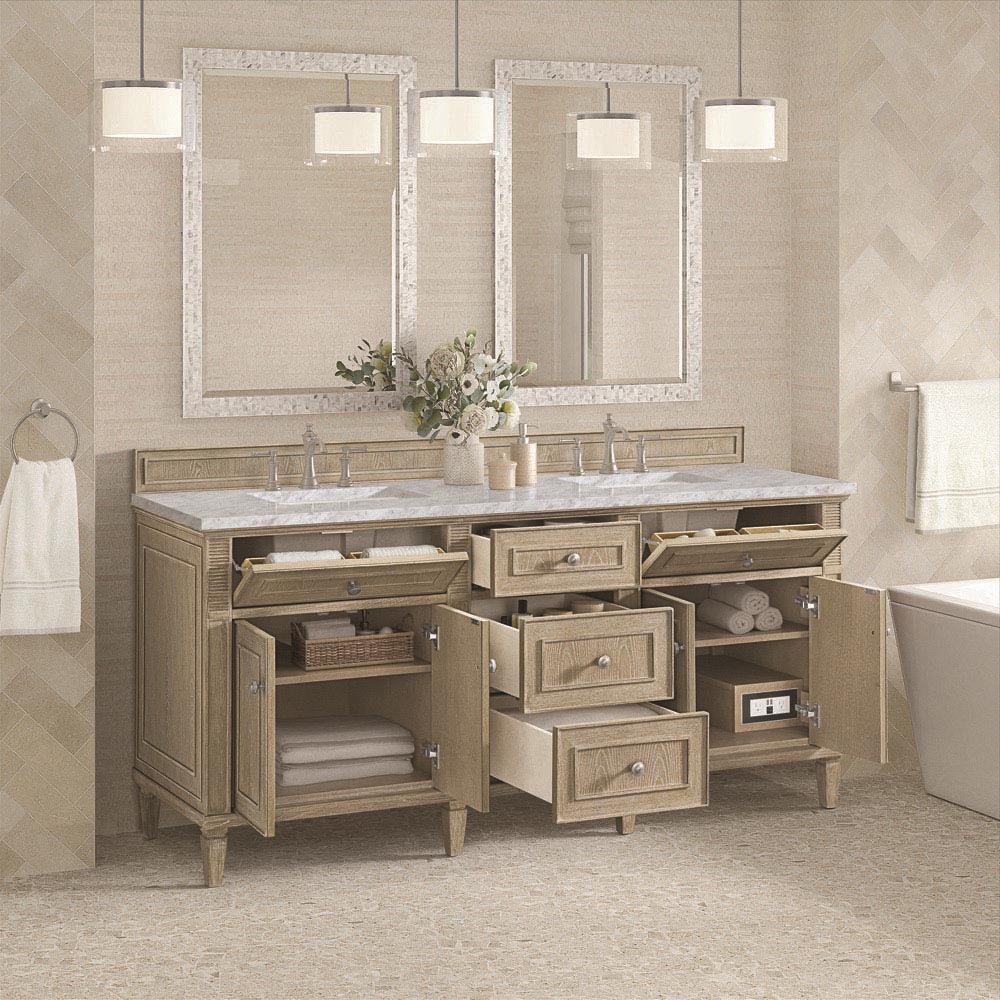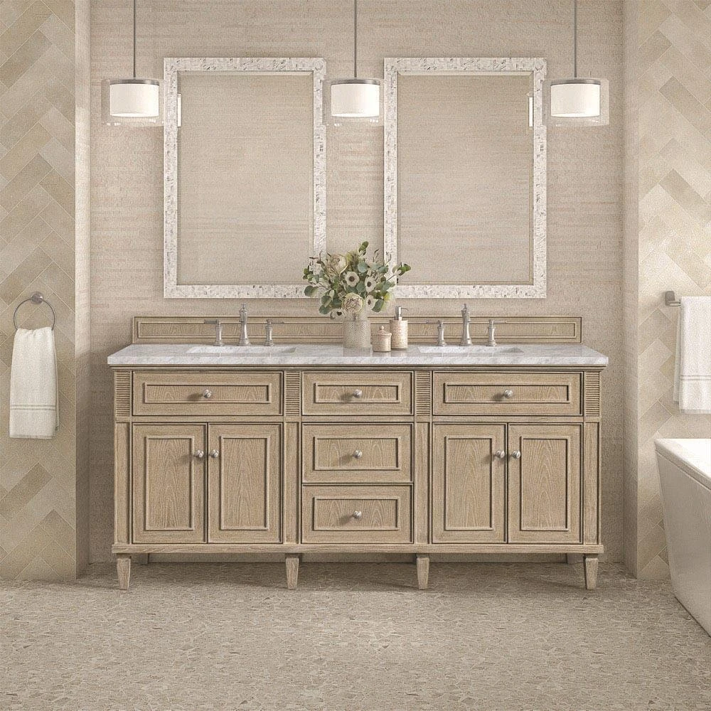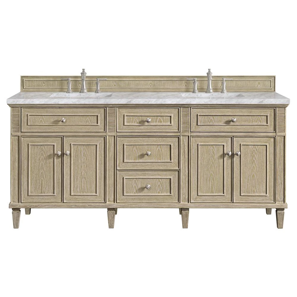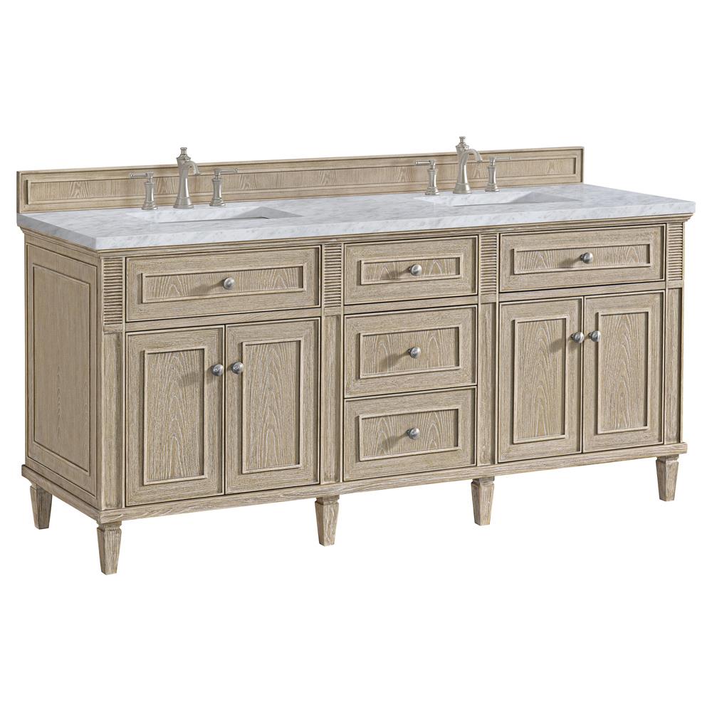 Gareth French Country Carrara Marble Whitewashed Wood Double Vanity Sink - 72"