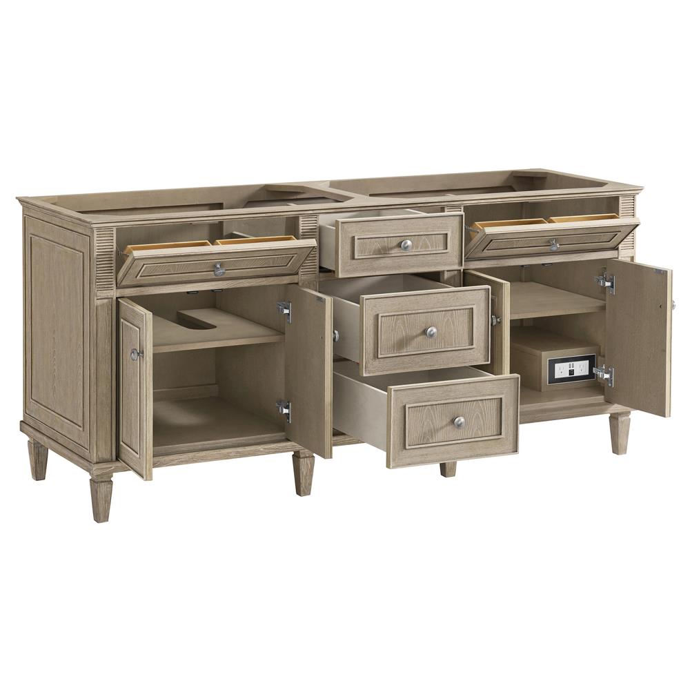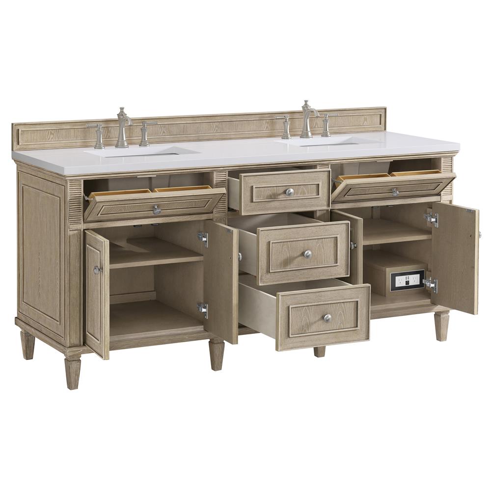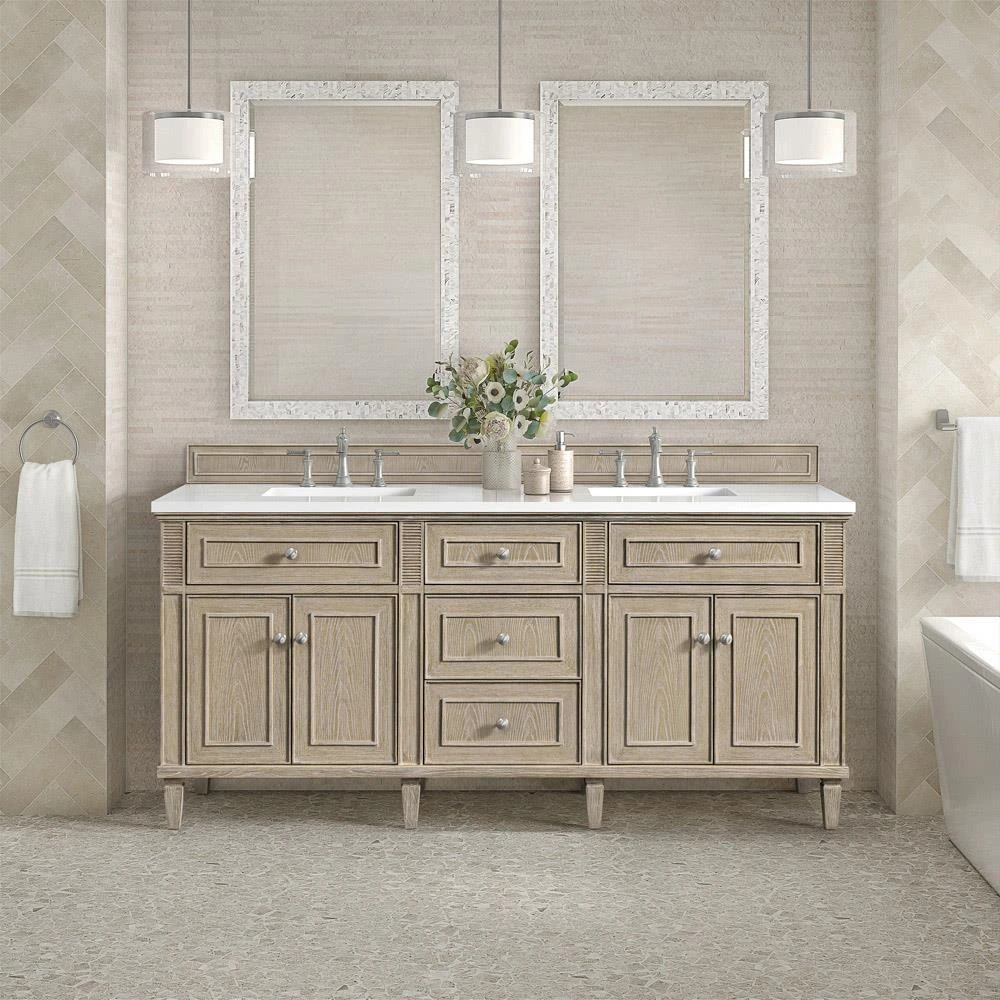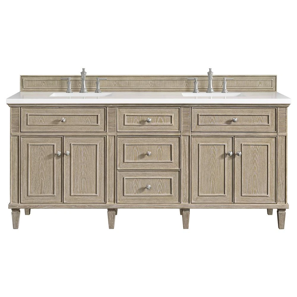 Gareth French Country White Zeus Quartz Whitewashed Wood Double Vanity Sink - 72"