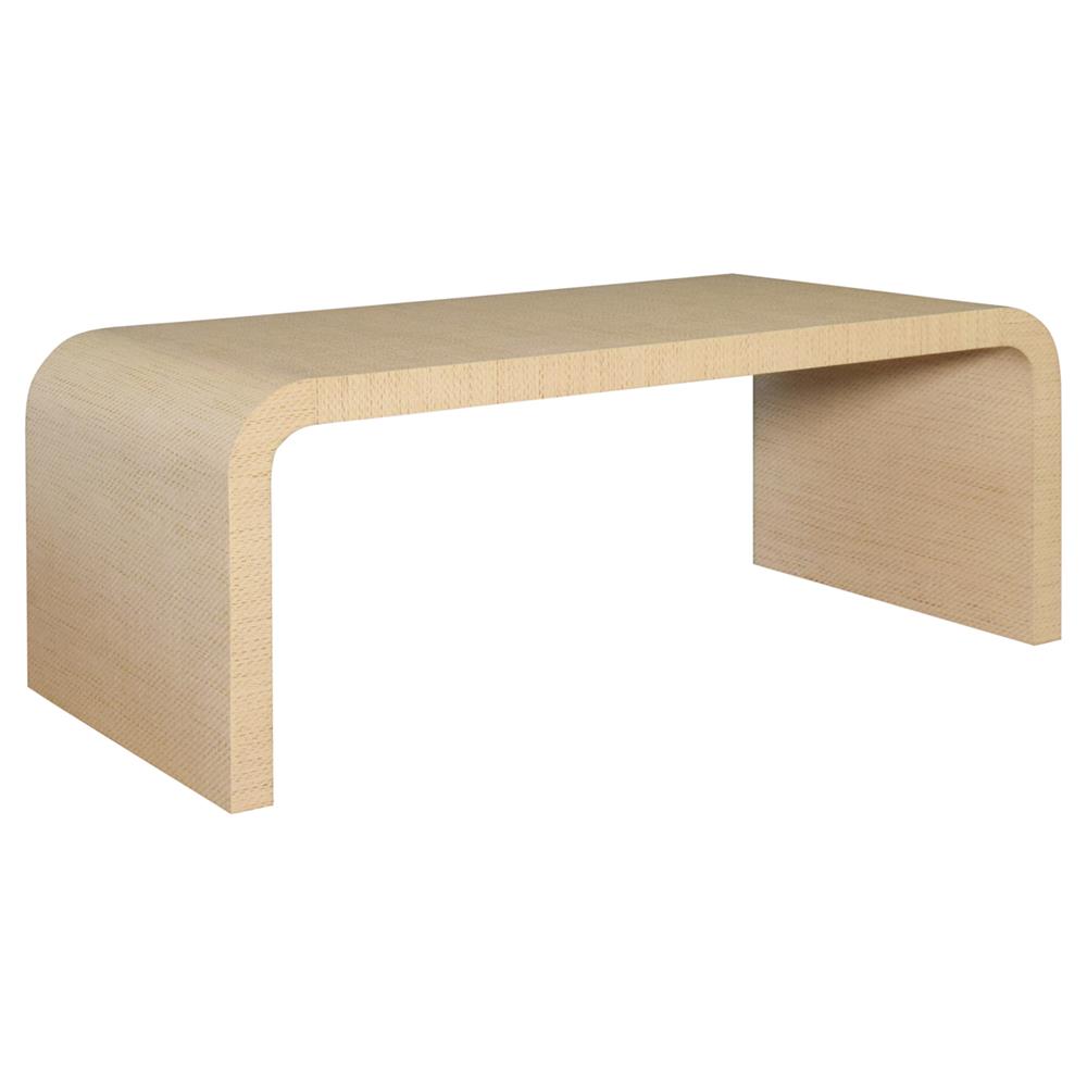 Worlds Away Newbury Modern Classic Natural Grasscloth Rectangular Coffee Table