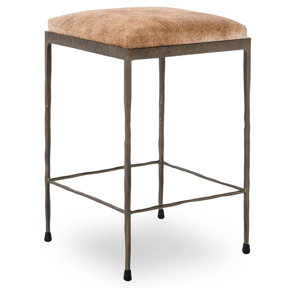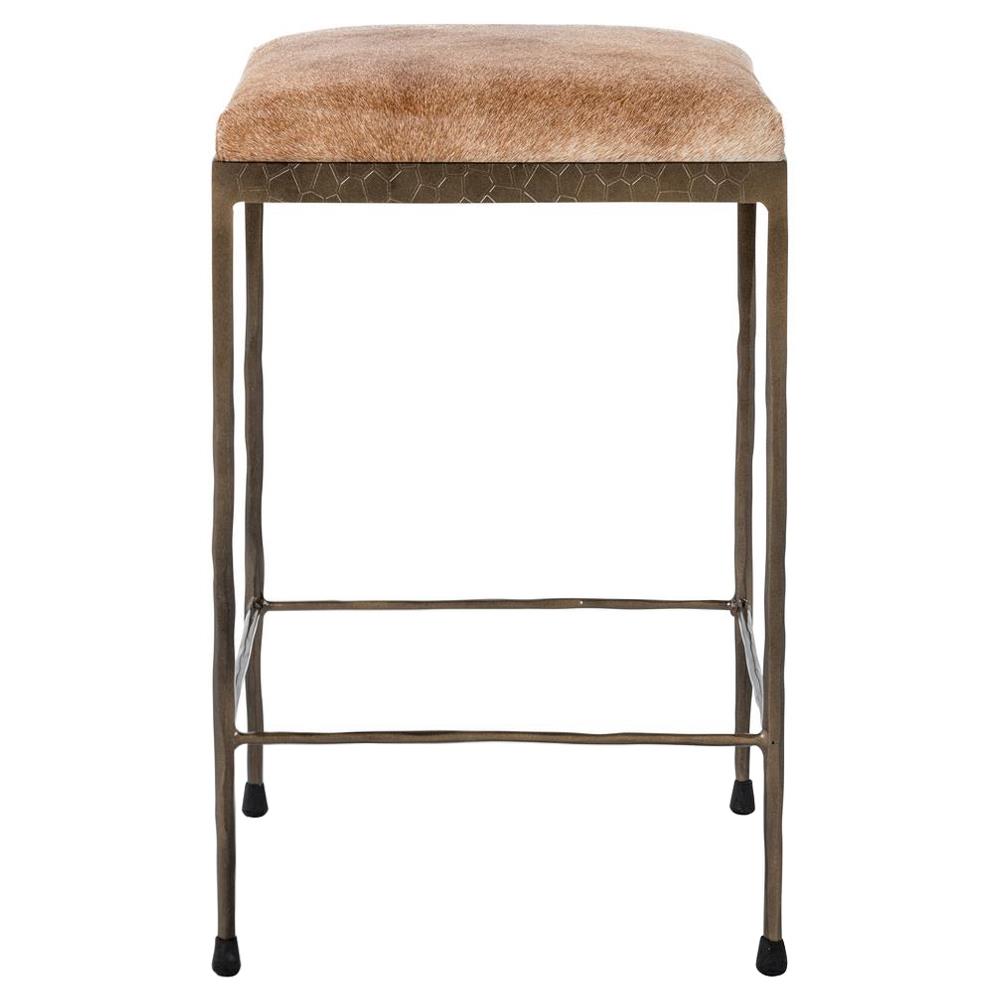 Geraldine Industrial Loft Brown Hair On Hide Iron Spindle Backless Counter Stool