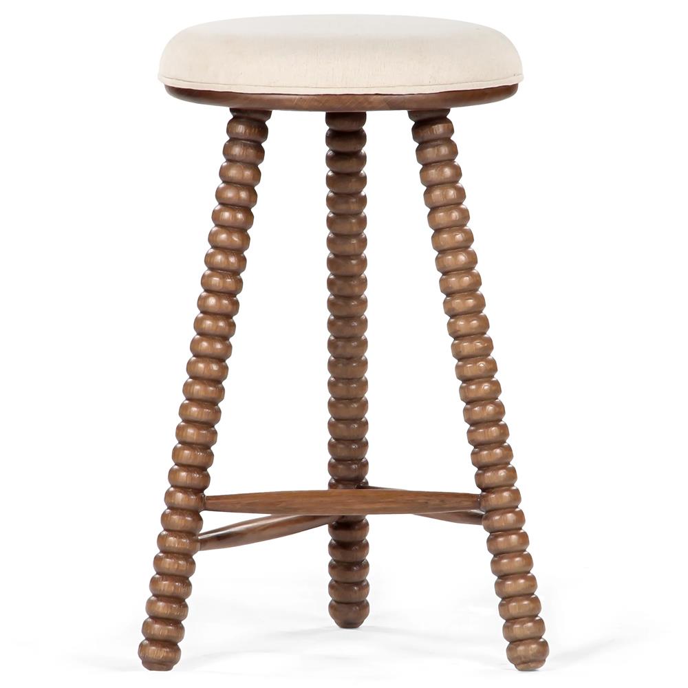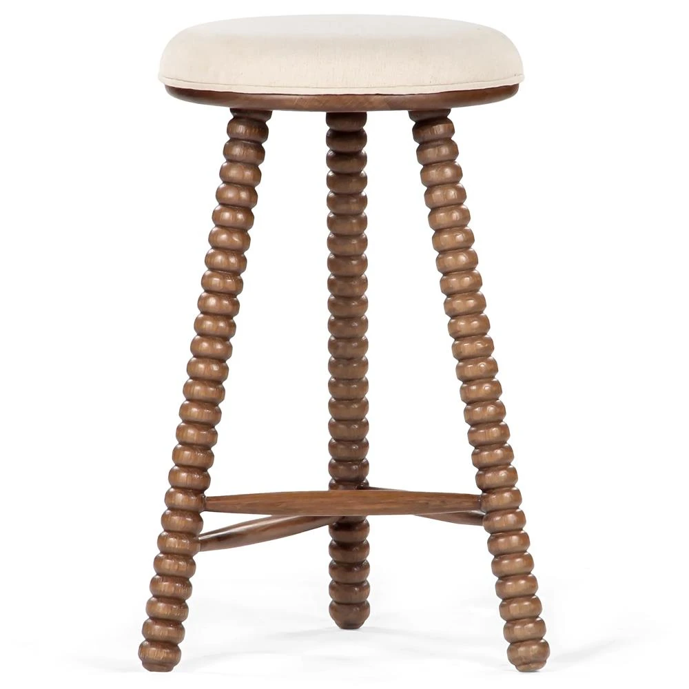 Tobin Updated Traditional Off White Upholstered Brown Wood Counter Stool