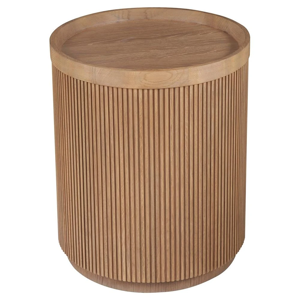 Mila Modern Classic Brown Tambour Oak Wood Round Side Table