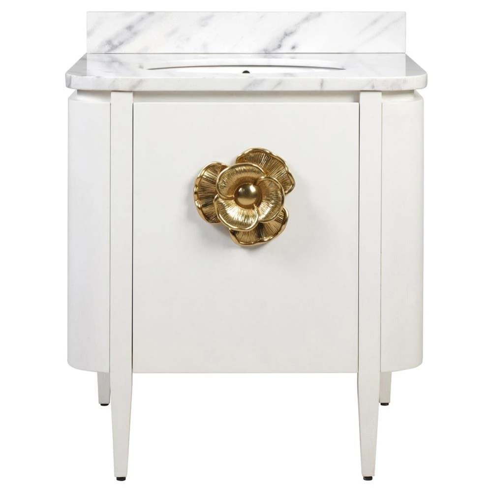 • Eileen Updated Traditional White Marble Grey Wood Vanity Sink - 42"|Kathy Kuo Home