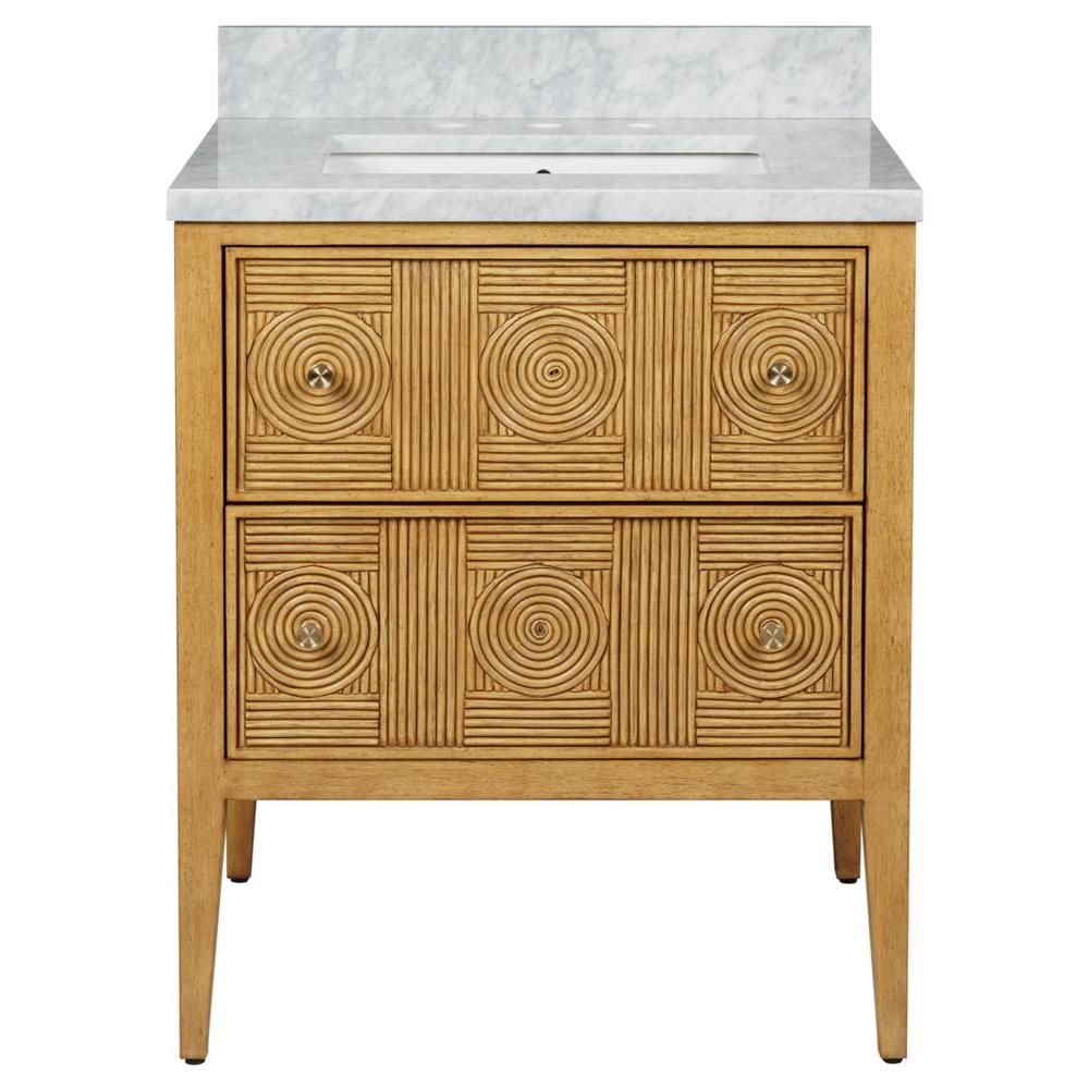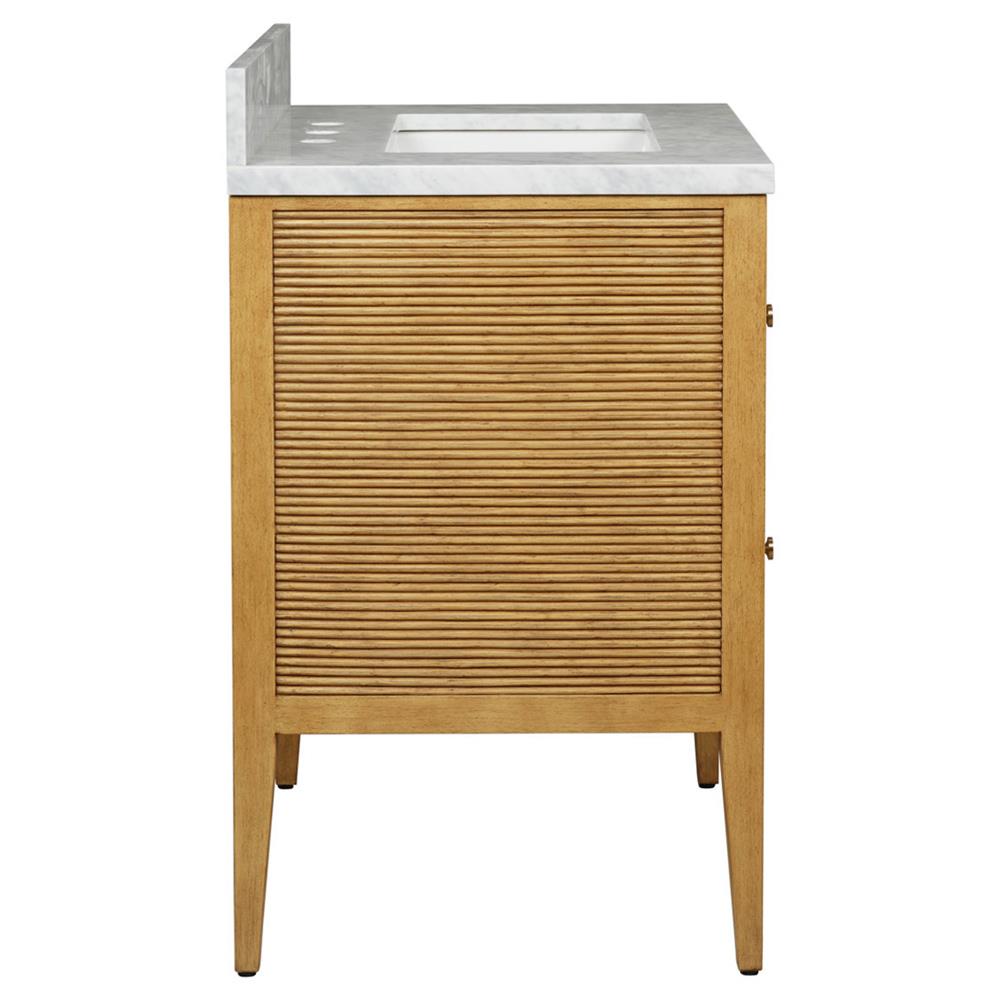Worlds Away Odin Modern Classic Marble Fluted Cerused Oak Bath Vanity Sink - 31"