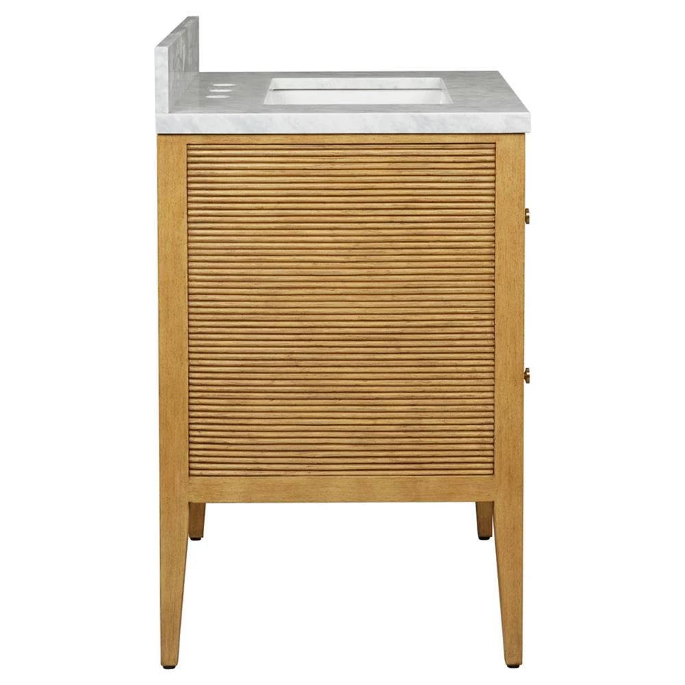 • Worlds Away Odin Modern Classic Marble Fluted Cerused Oak Bath Vanity Sink - 31"|Kathy Kuo Home