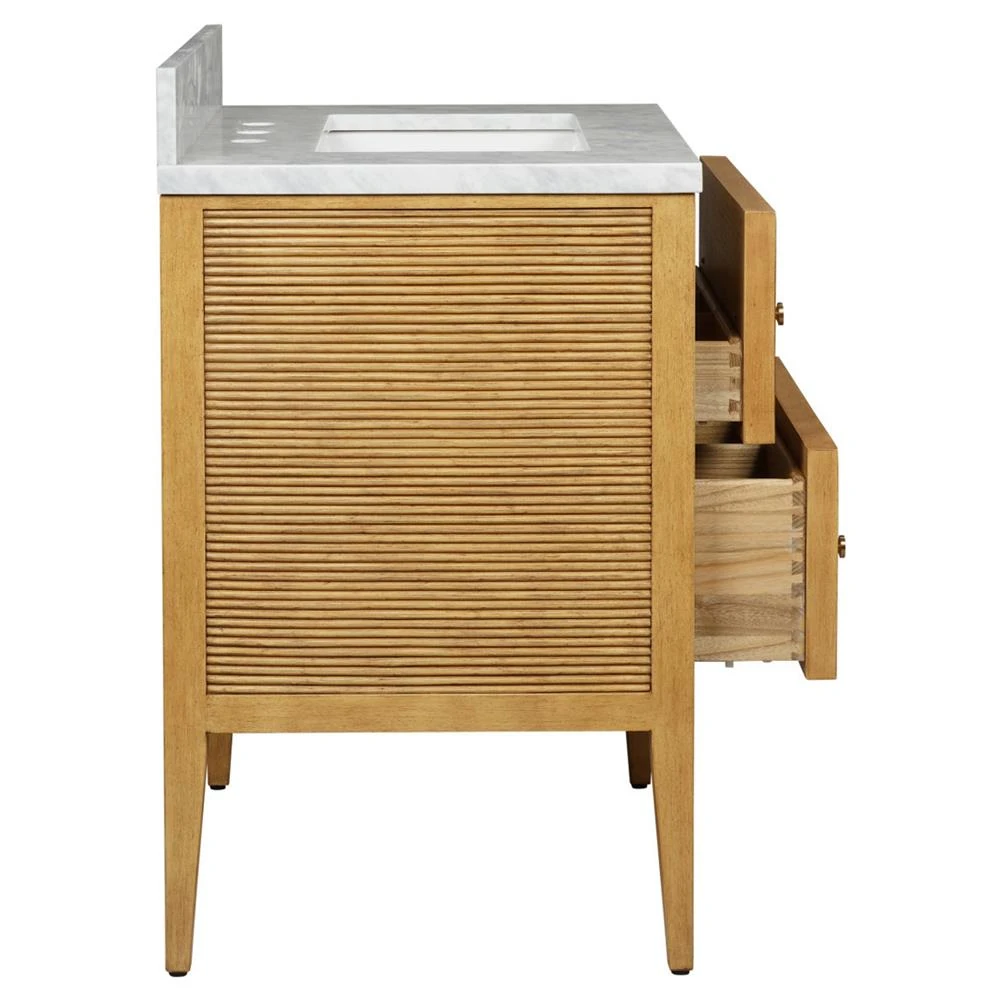 • Cynthia Modern Classic Carrara Marble Bleached Oak Wide Vanity Sink - 48"|Kathy Kuo Home