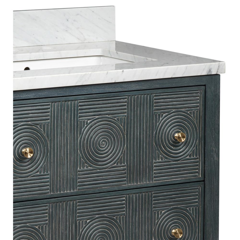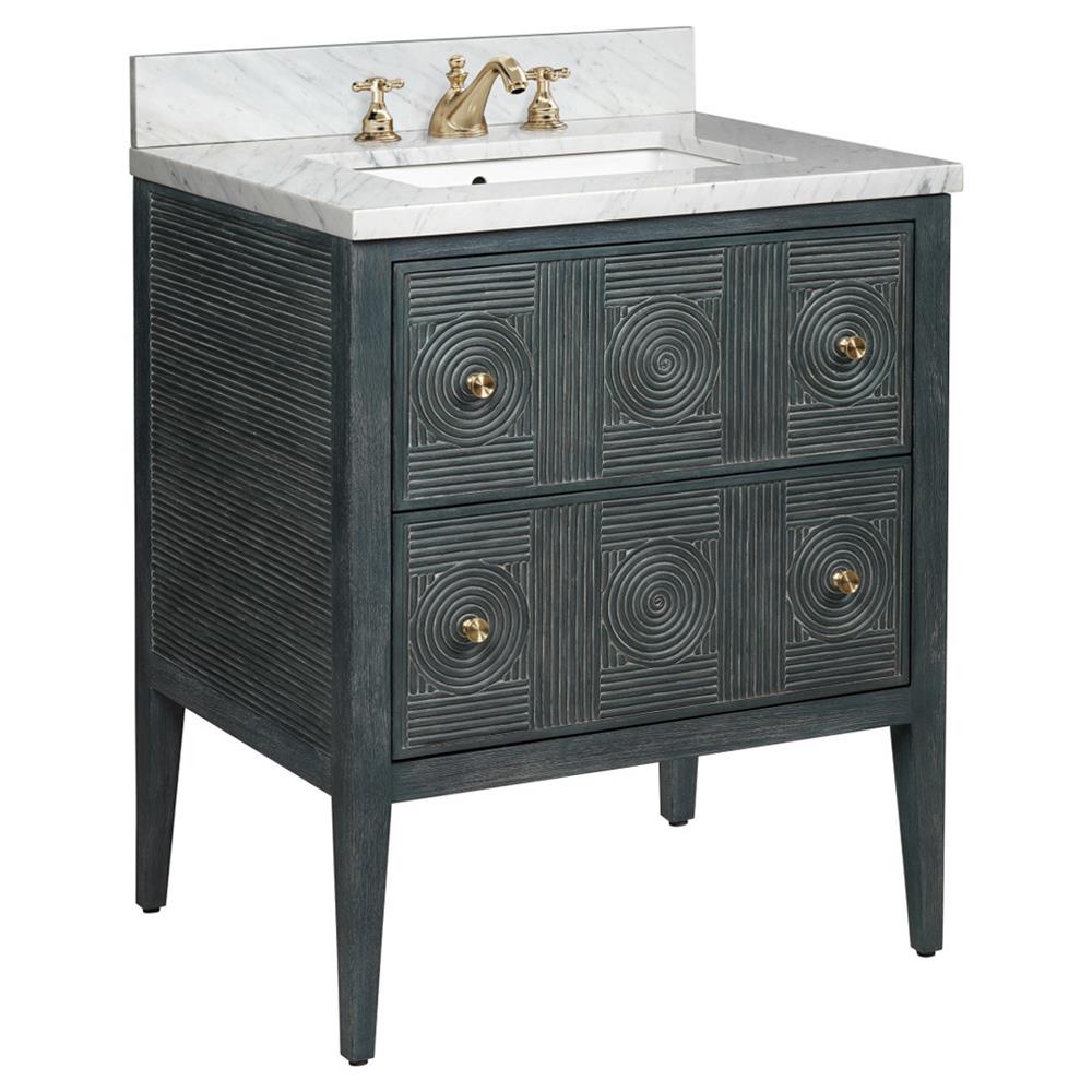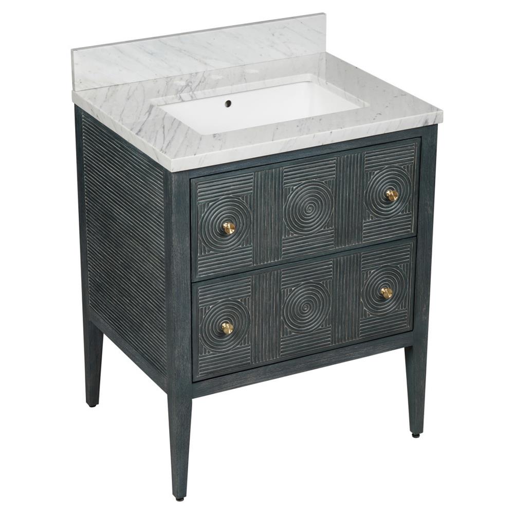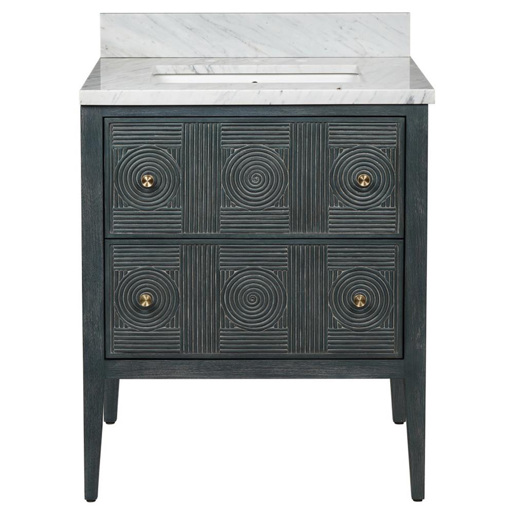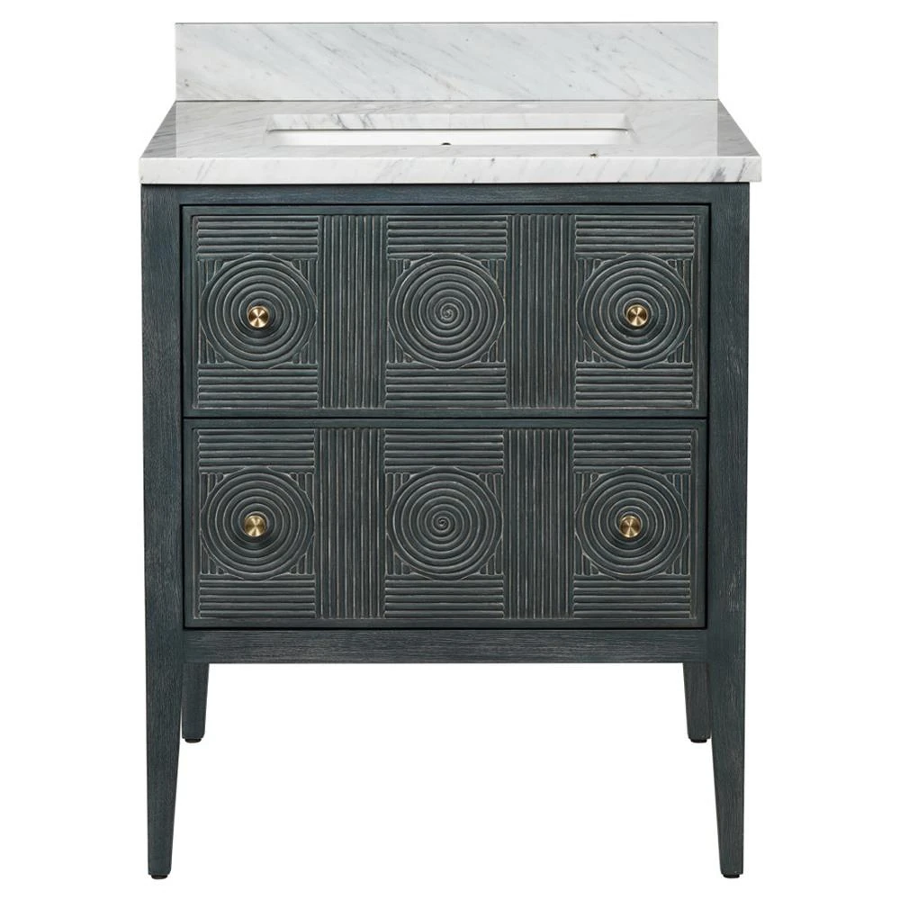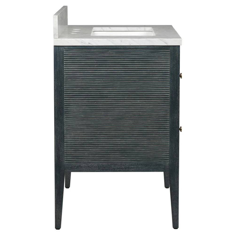 • Worlds Away Odin Modern Classic White Marble Fluted Dark Brown Oak Bath Vanity Sink - 31"|Kathy Kuo Home