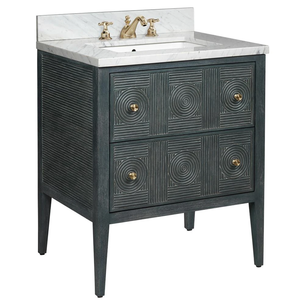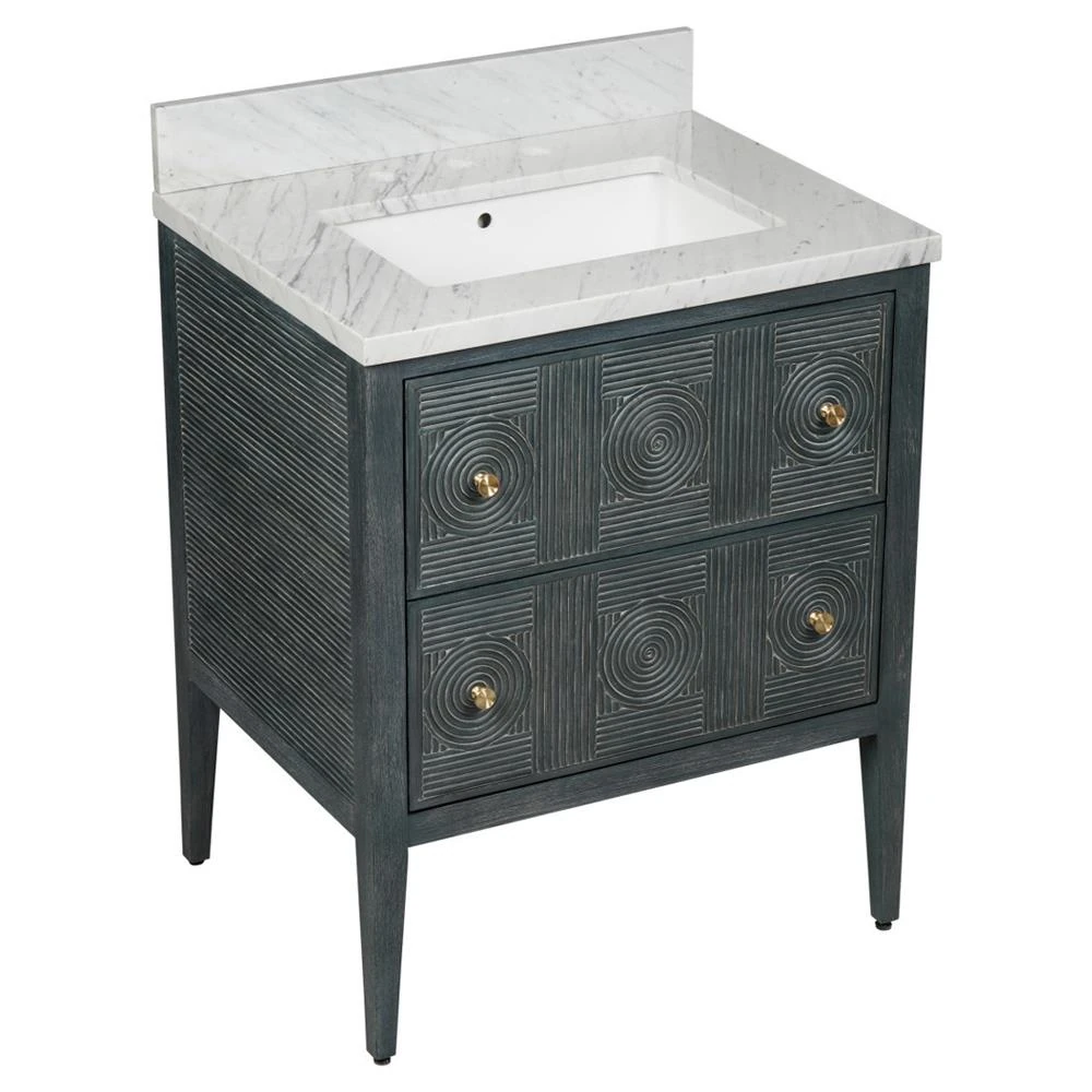 Bella Coastal Beach White Carrara Marble Navy Rattan Vanity Sink - 28"