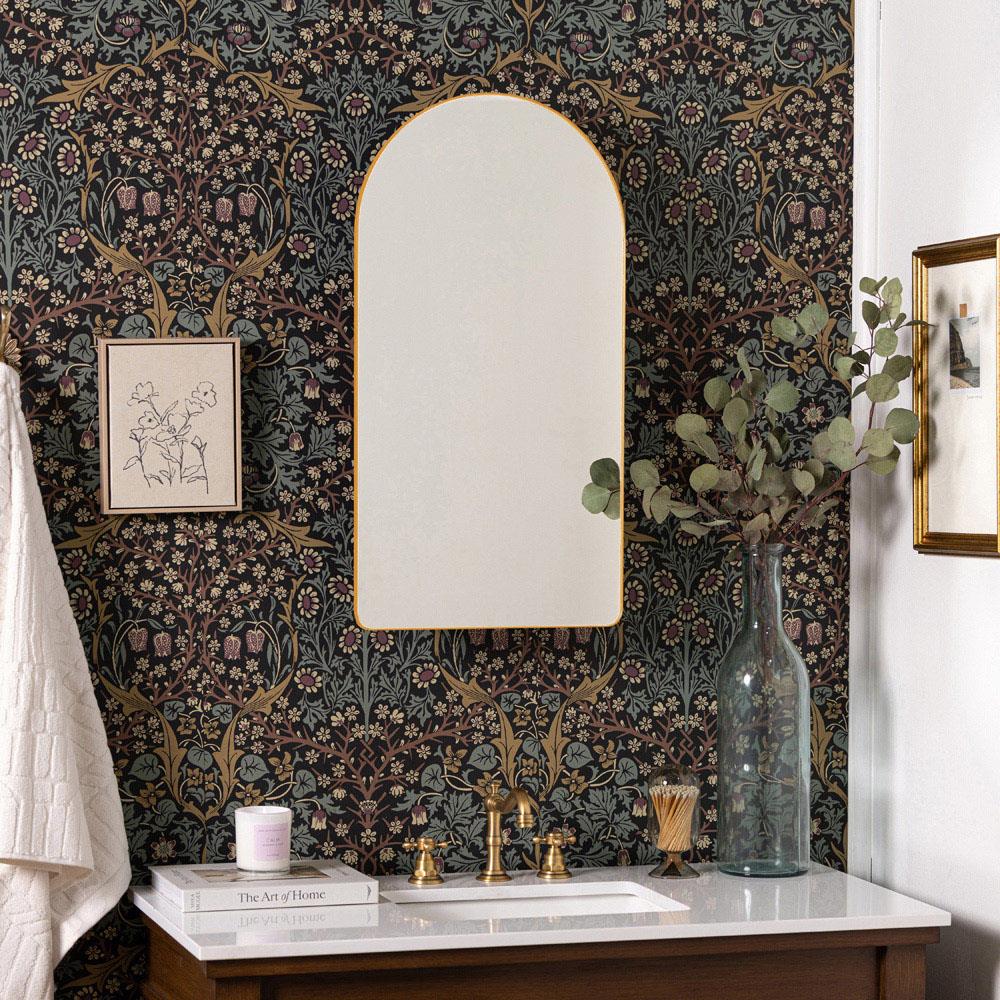 • Alaina Modern Classic Black Arched Medicine Cabinet Mirror|Kathy Kuo Home