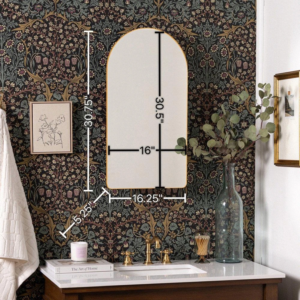 Alaina Industrial Gold Metal Frame Arch Wall Mirror