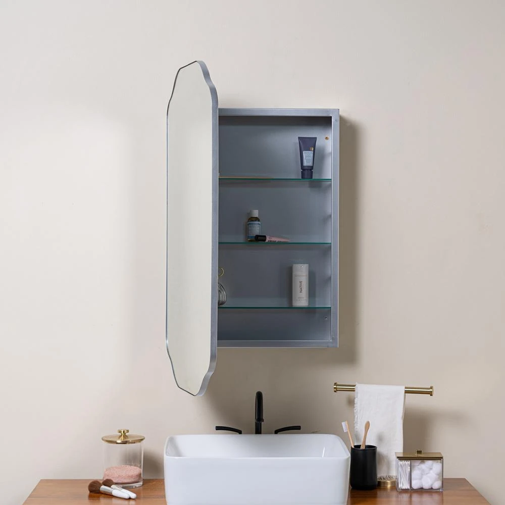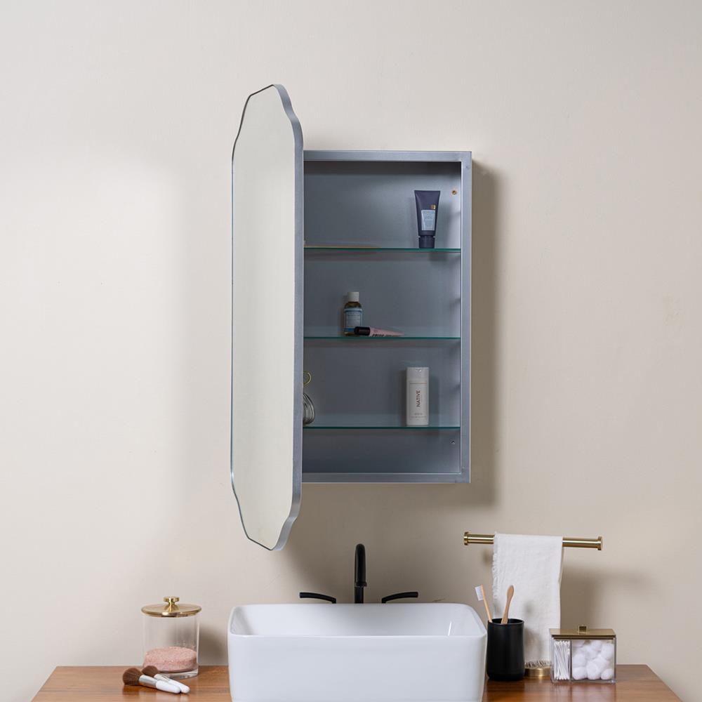 Serene Hollywood Regency Silver Medicine Cabinet Mirror