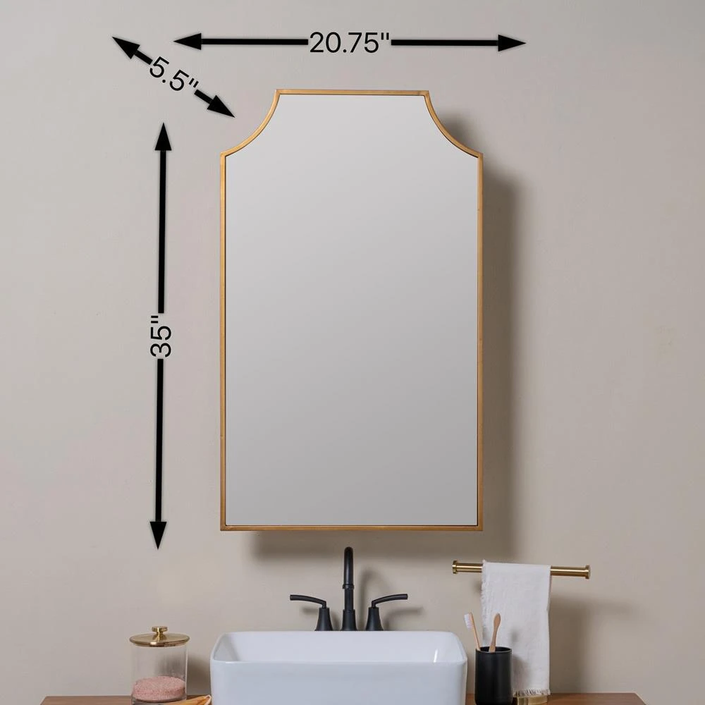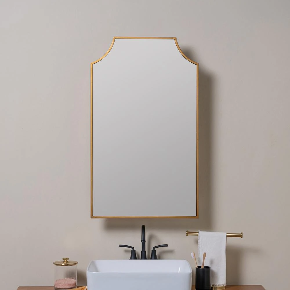 • Amy Hollywood Regency Gold Medicine Cabinet Mirror|Kathy Kuo Home