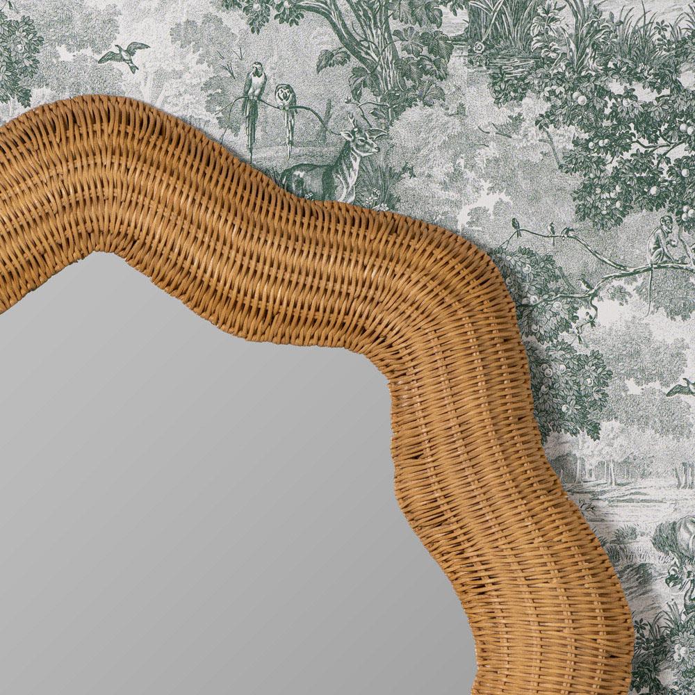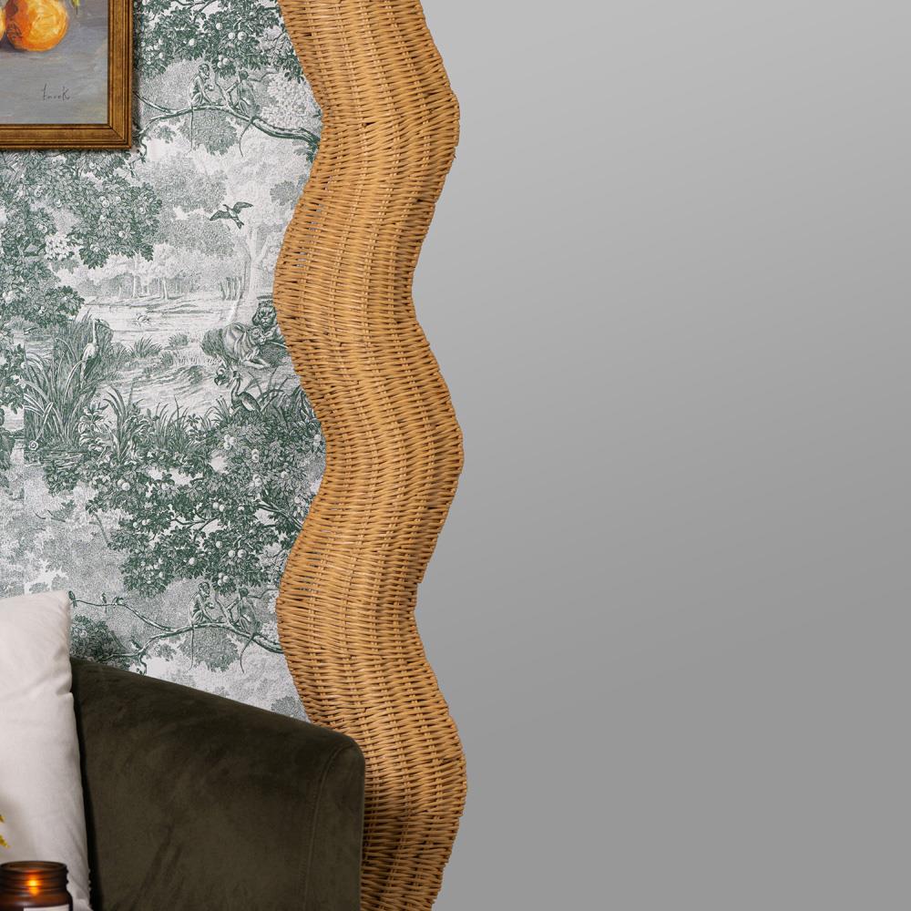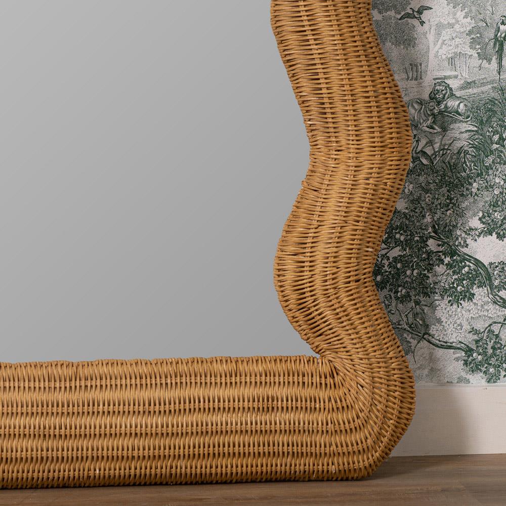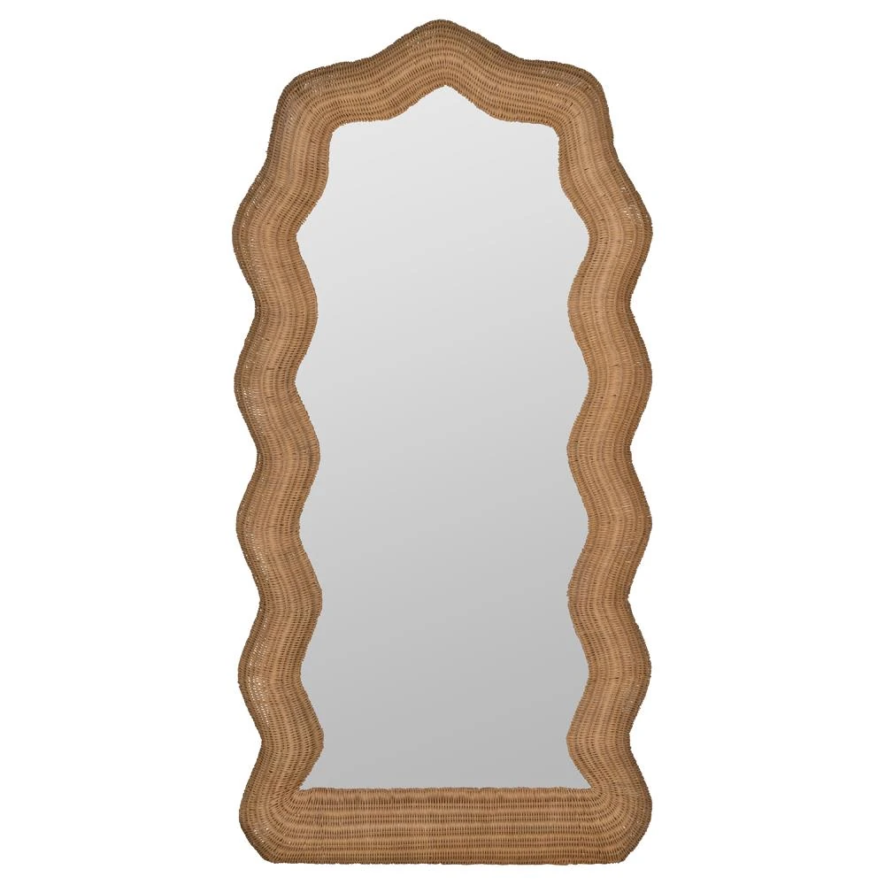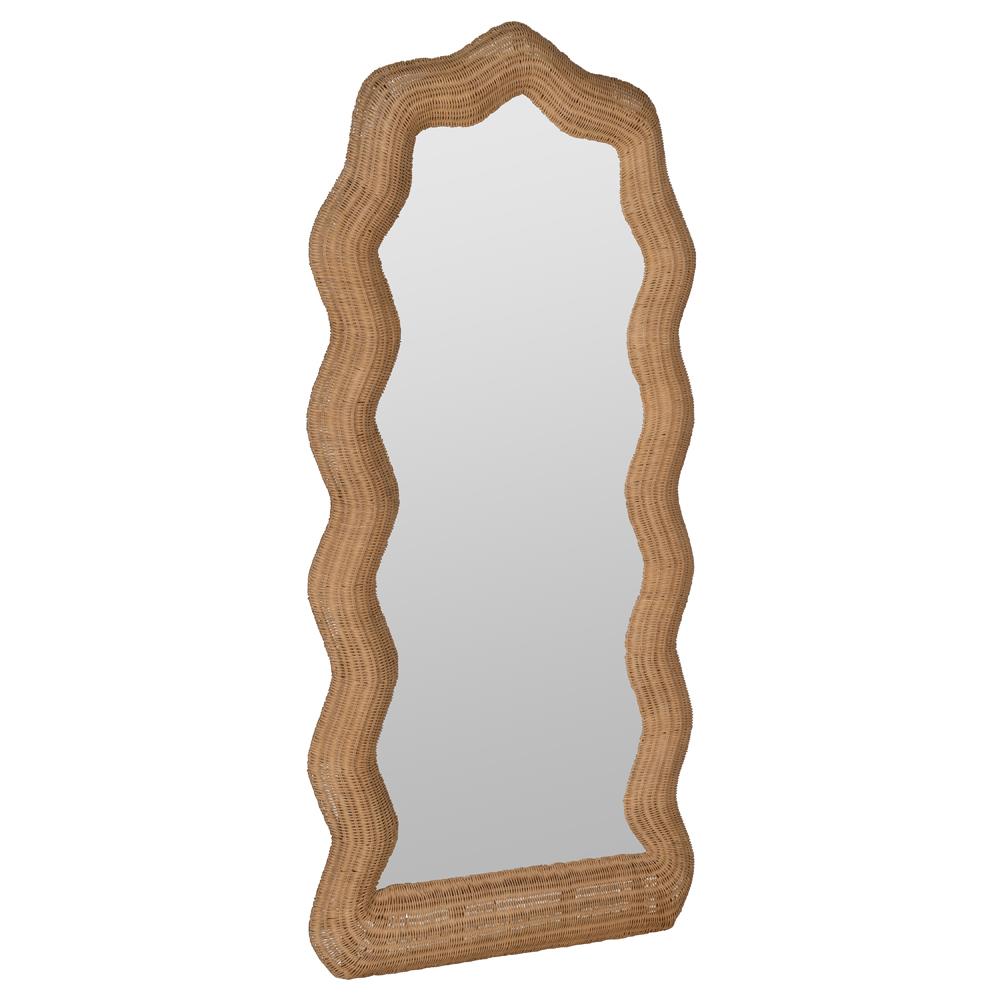 Adeline Coastal Beach Natural Rattan Scalloped Floor Mirror