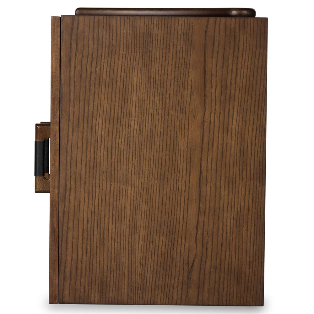 • Features 2 drawers with leather-wrapped hardware and French dovetail joinery