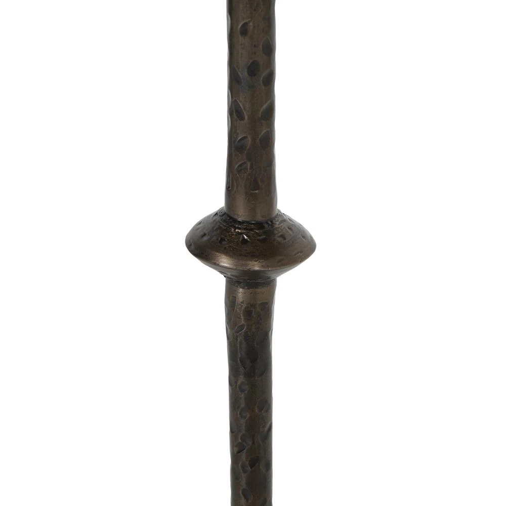 • Features a round top, 3 curved legs, and a textured cast metal turned post for an antiqued metalwork look