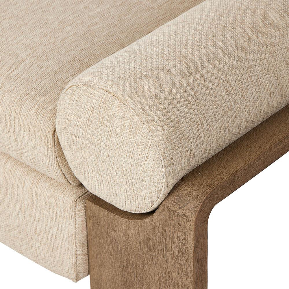 • Upholstered in beige performance fabric. Fabric content: 100% olefin; Fabric rub count: 16,000; Filling in back cushion: 90% polyester fiber, 10% polyester fiber batting; Filling in seat: 91% polyurethane foam pad, 9% polyester fiber batting